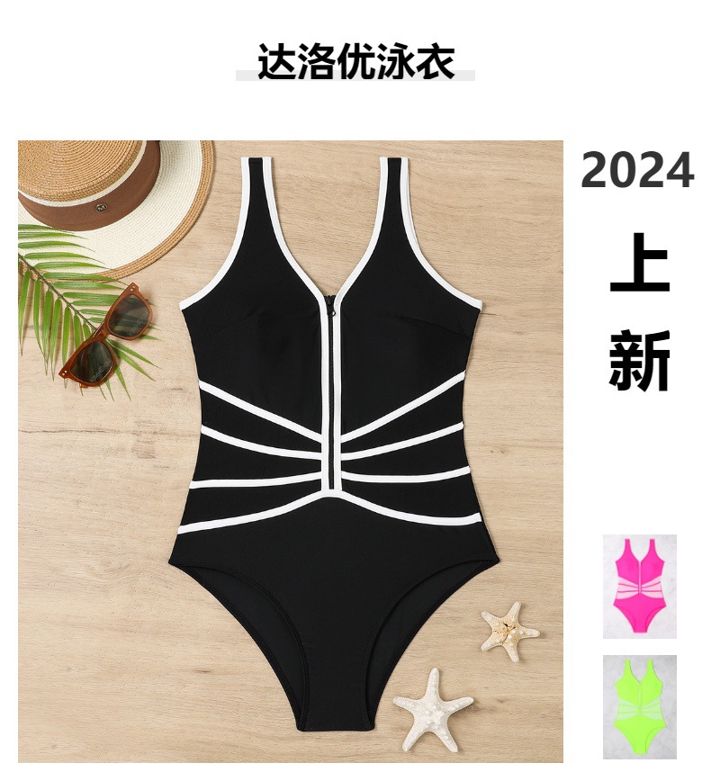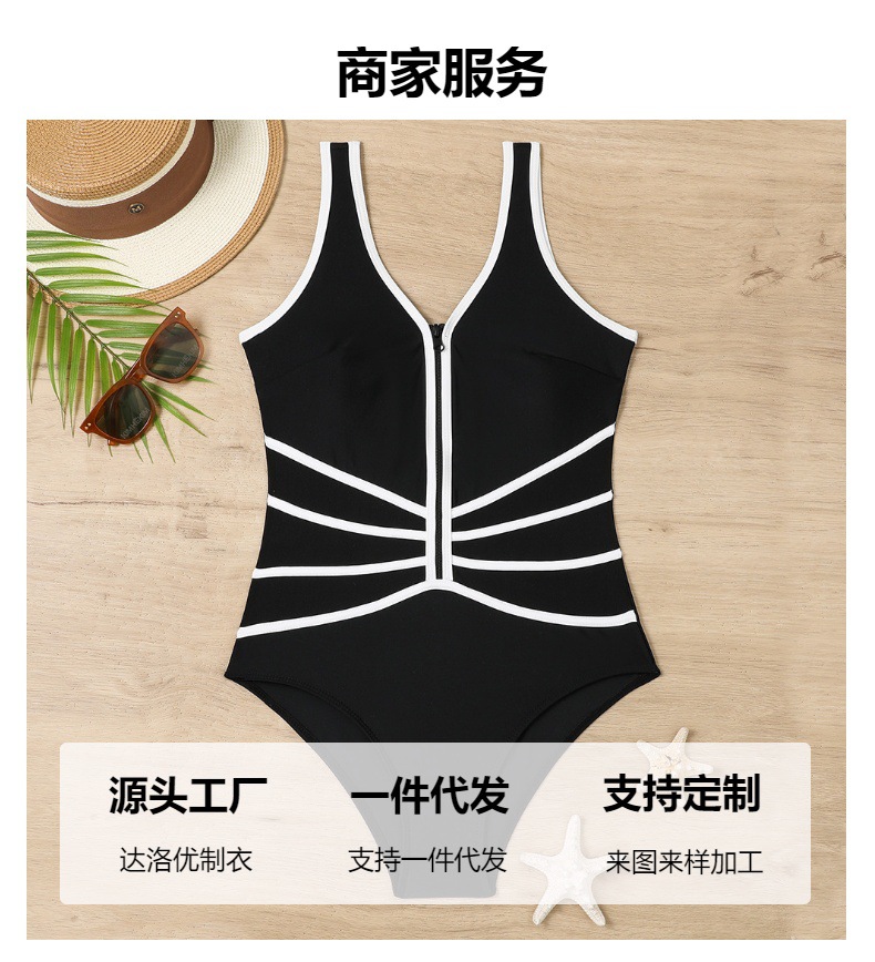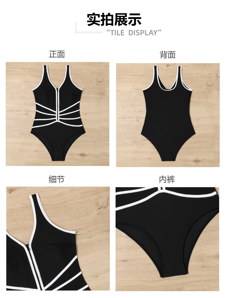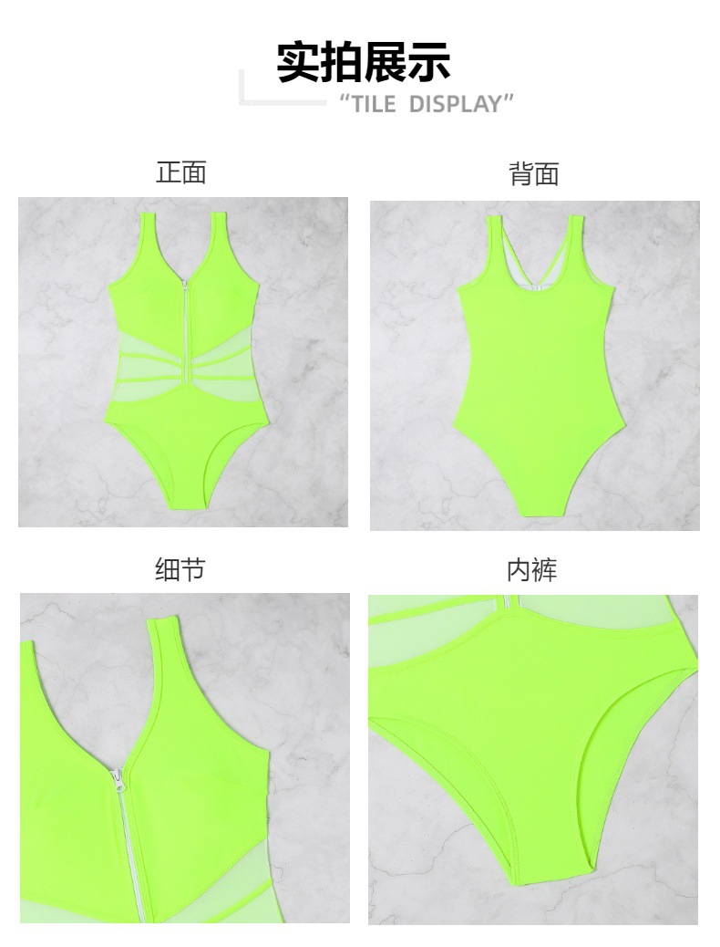 Купальник纯色泳衣女显瘦紧身拉链泳装跨境热卖连体泳衣