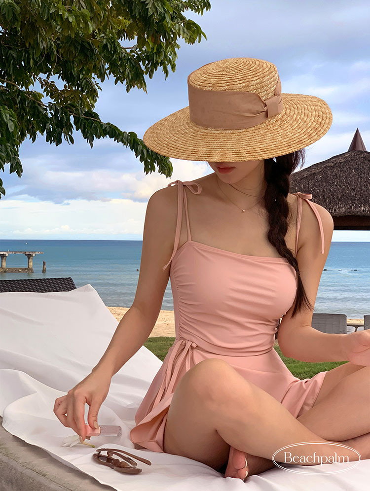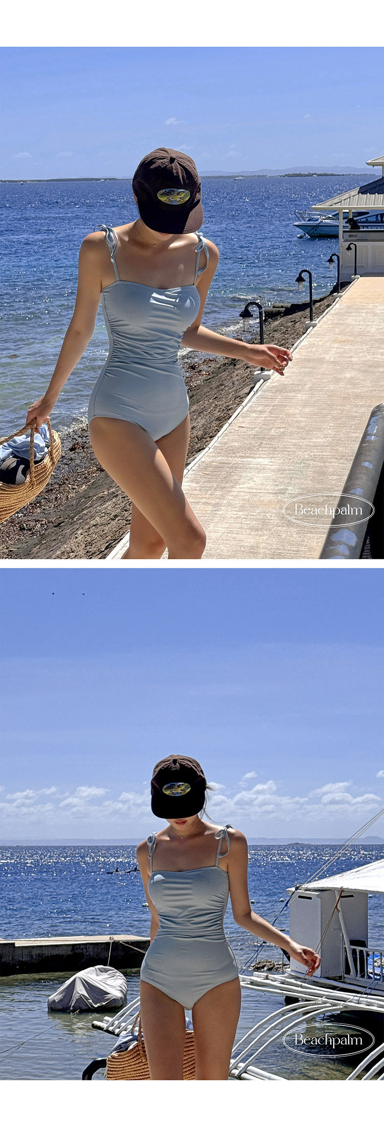 裙款可拆卸系带连体泳衣ins风连体比基尼两件套吊带清纯保守泳衣