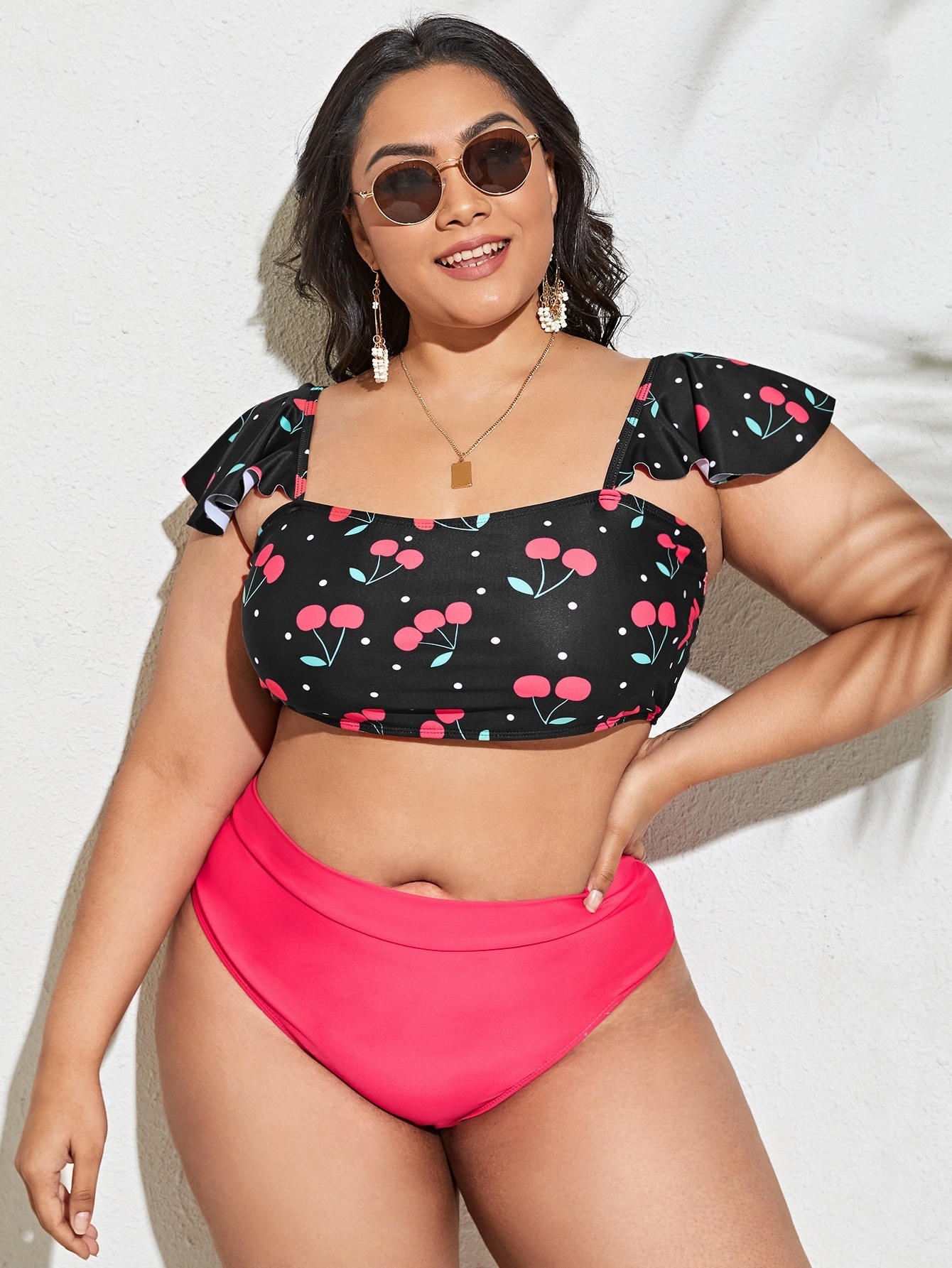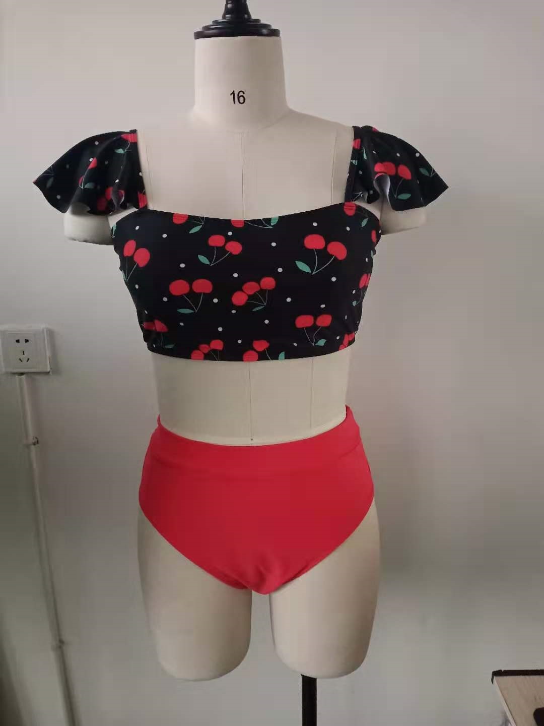 外贸分体大码泳衣女性感高腰遮肩性感吊带bikini大码欧美比基尼女