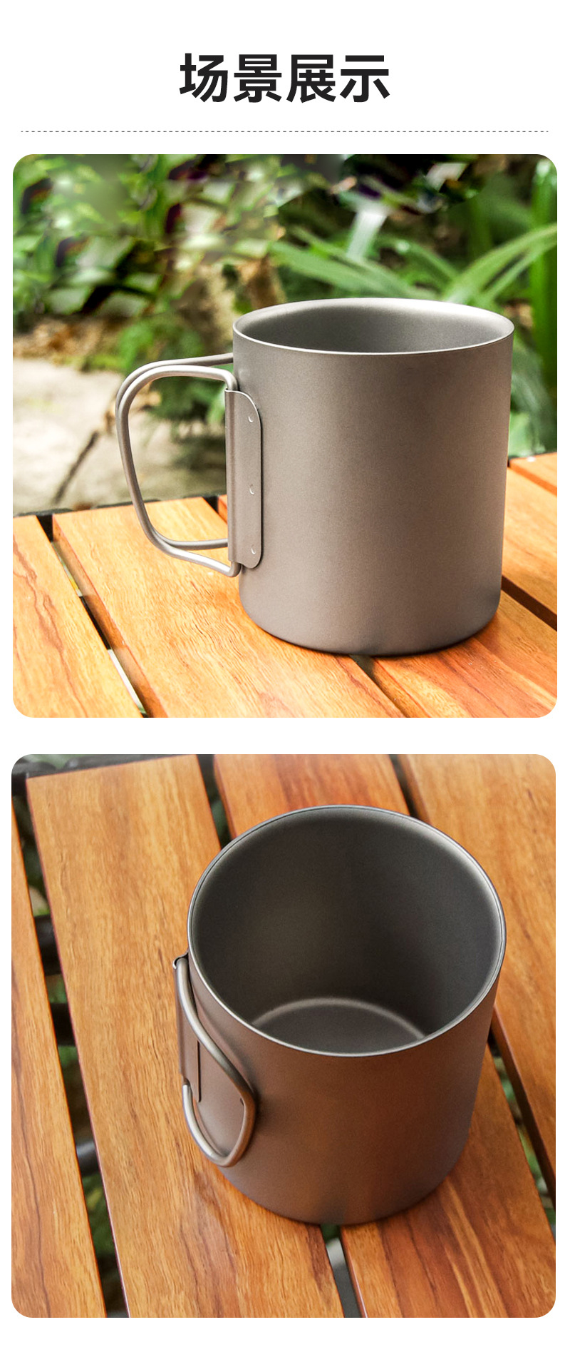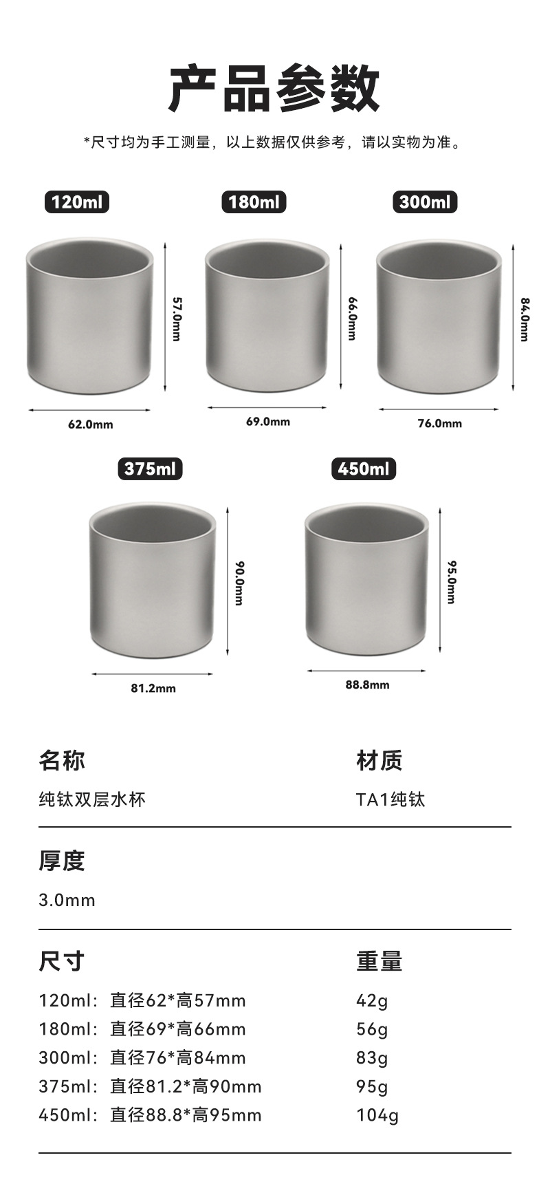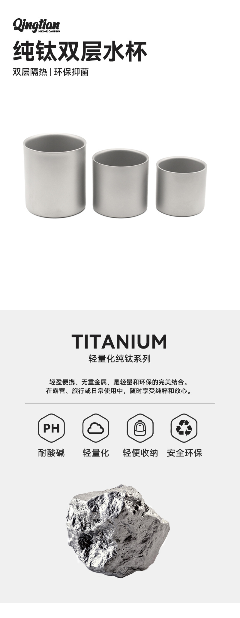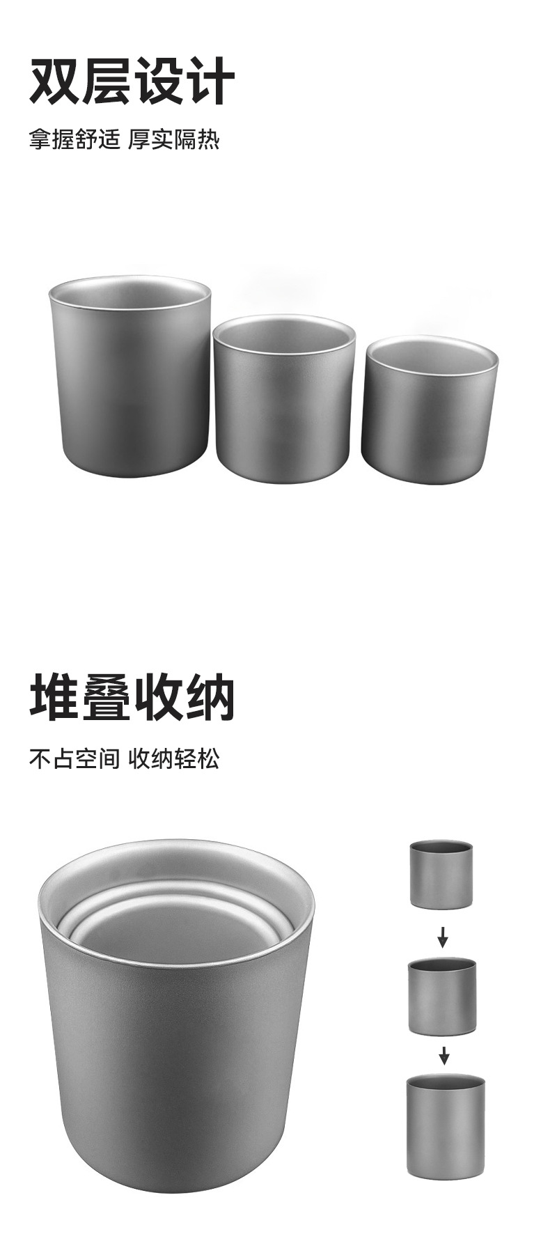 纯钛双层水杯套装轻量便携加厚多功能户外露营家用马克杯跨境批发