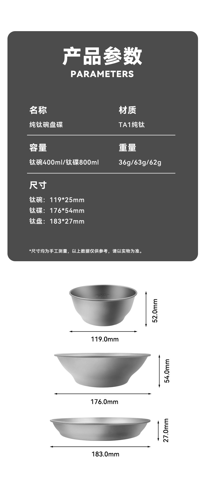 - 颜色:400ml钛碗
