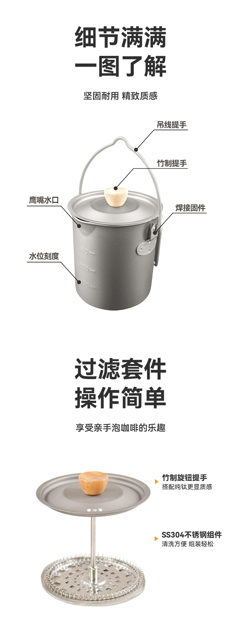 - 配件材质:SS304/竹旋钮提手