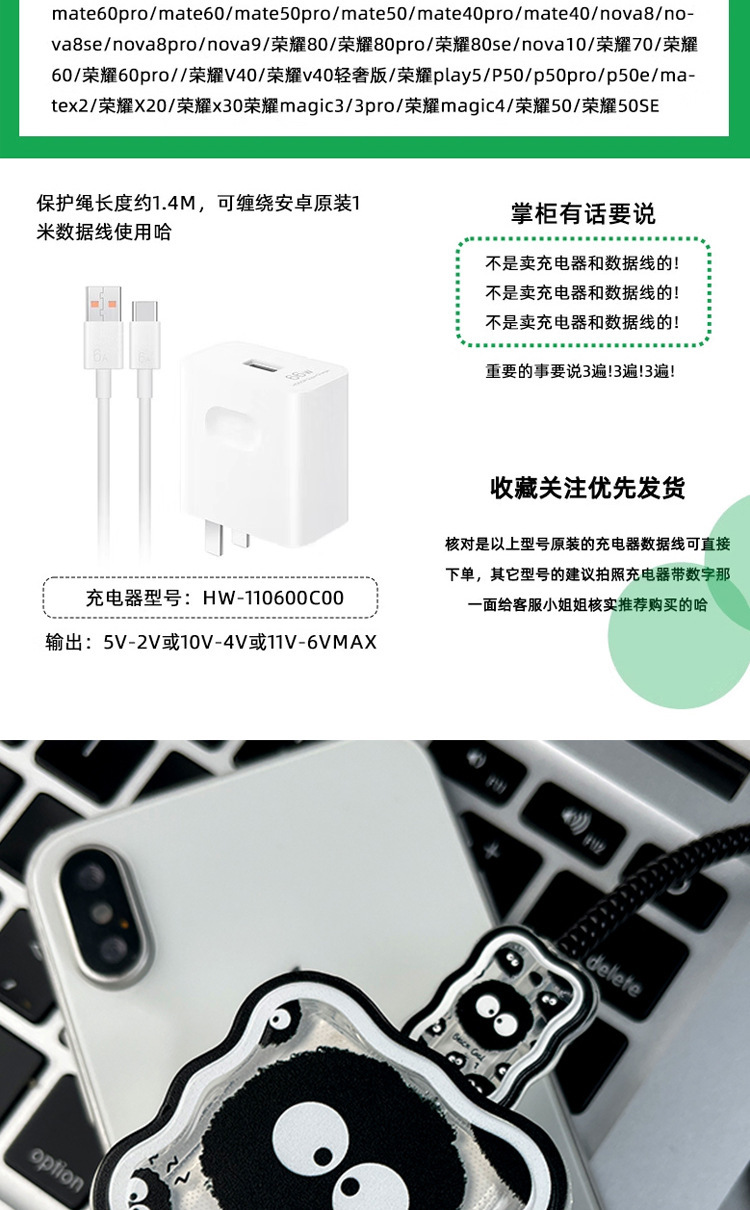 - 尺寸:适配华为66W88W原装充电器尺寸