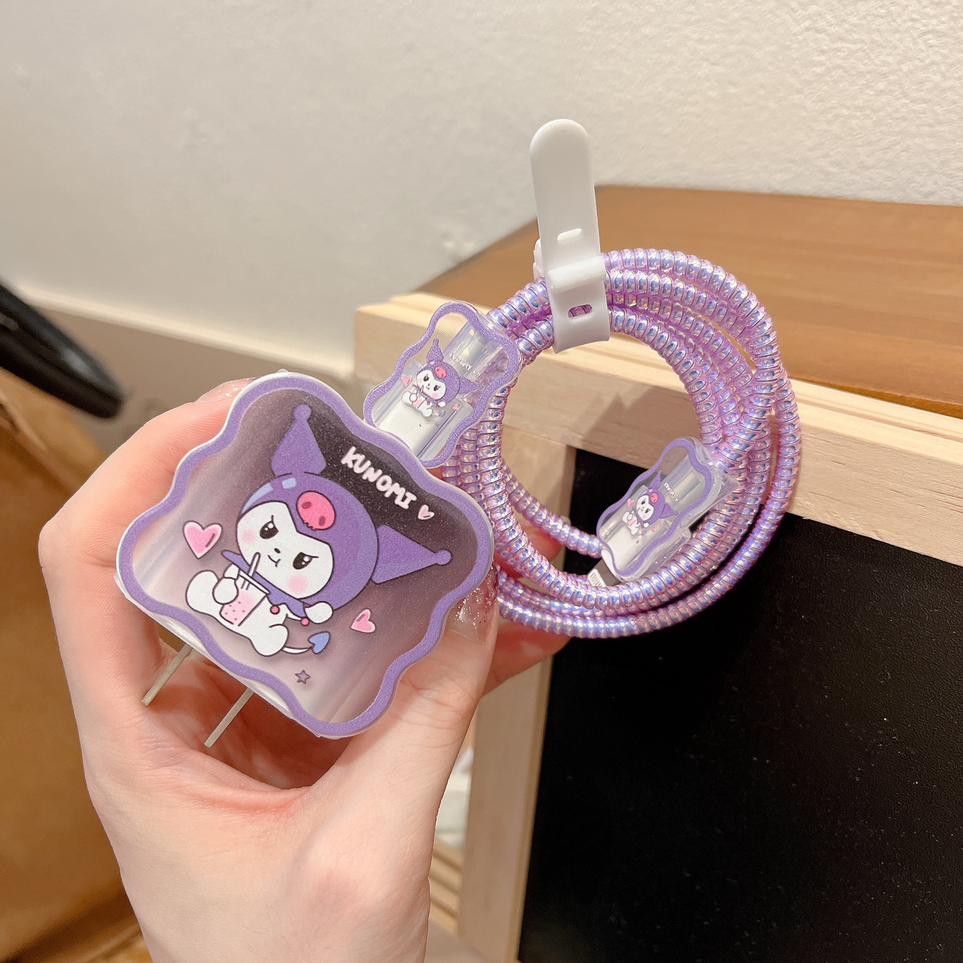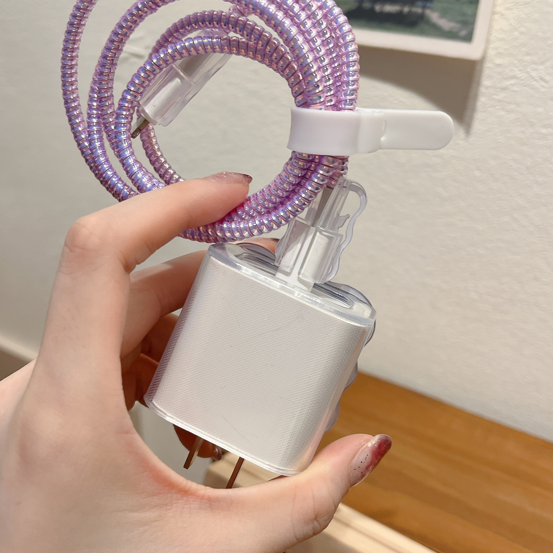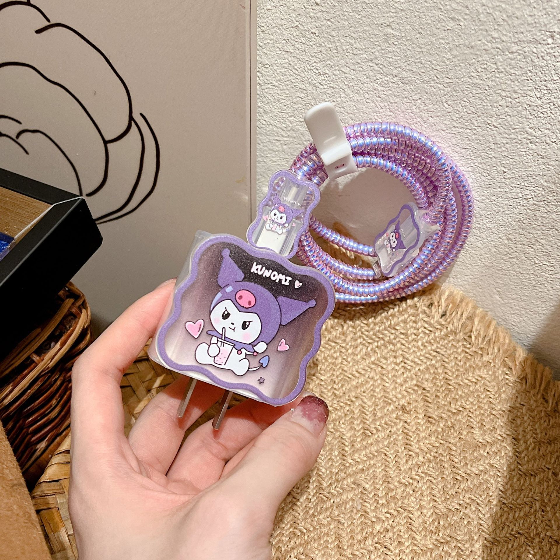新款数据线保护套适用苹果20w紫色兔子卡通充电器保护套时间长保