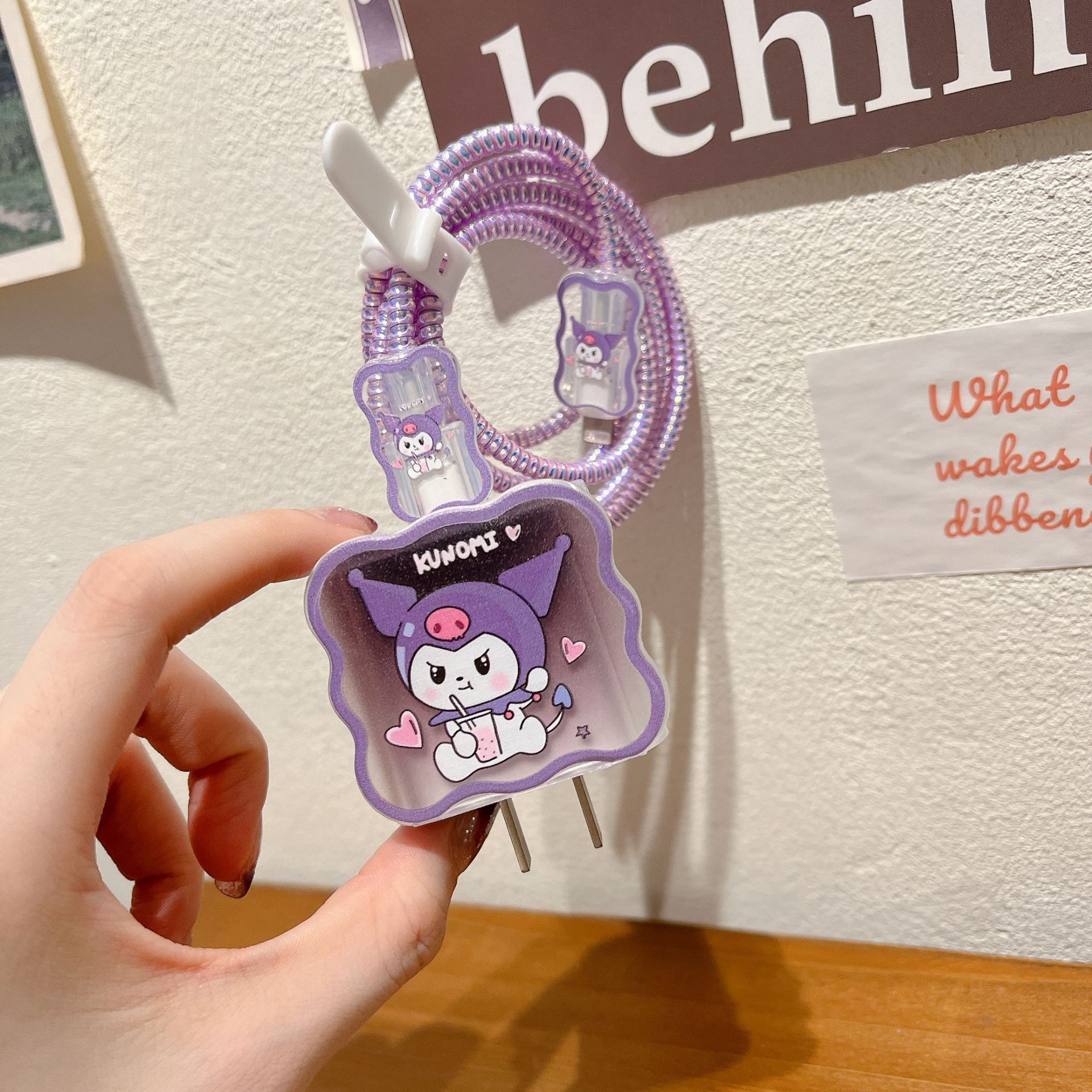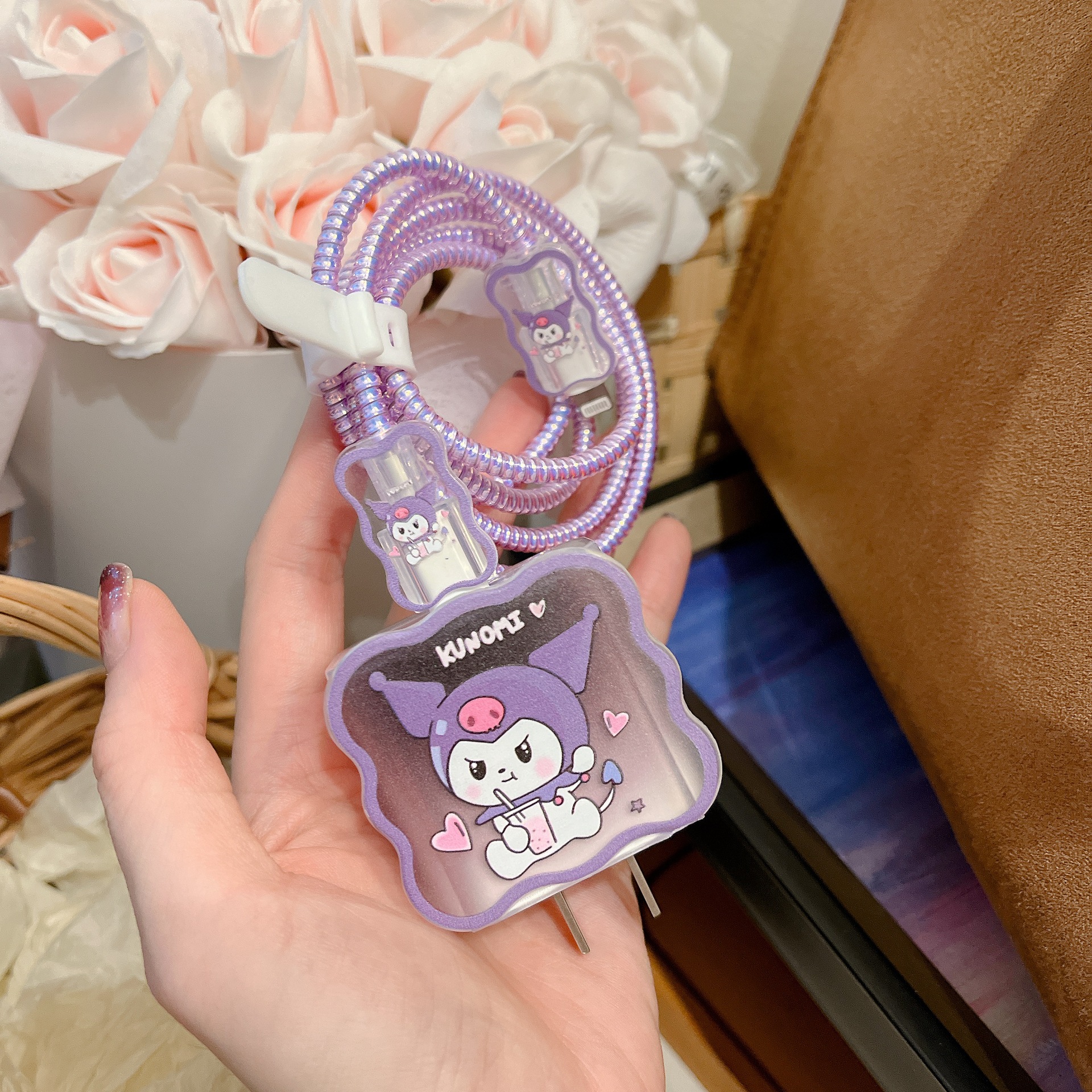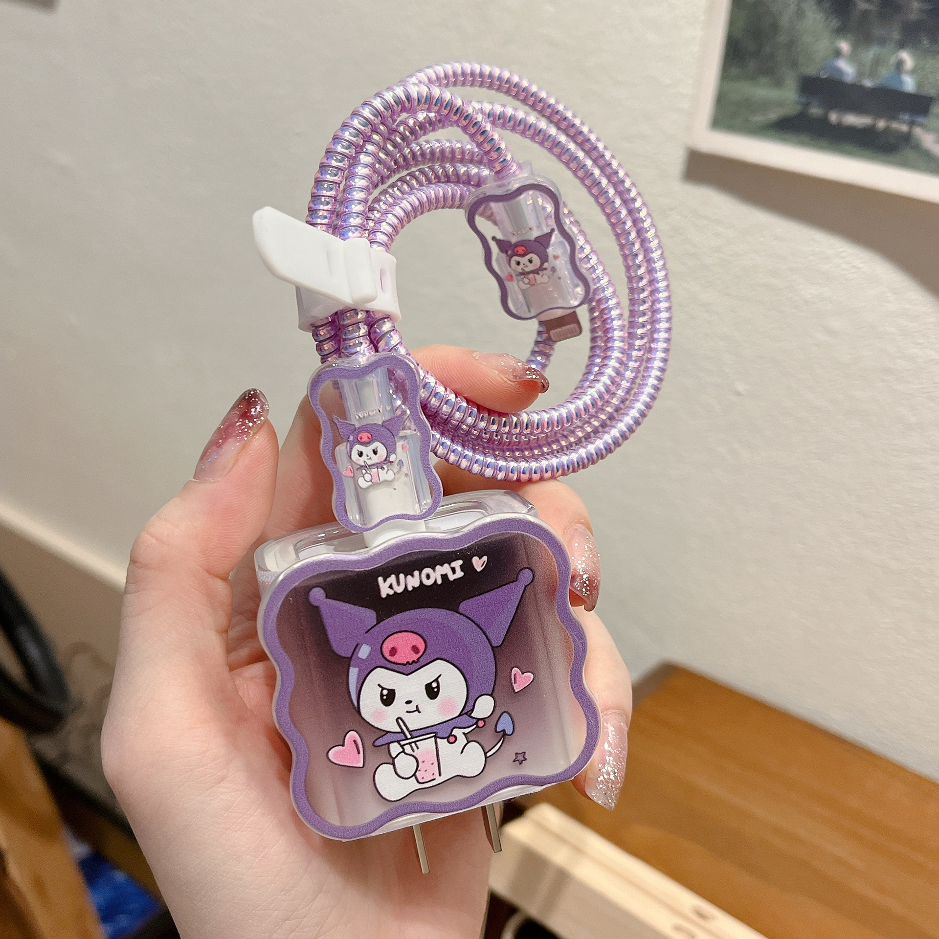 新款数据线保护套适用苹果20w紫色兔子卡通充电器保护套时间长保