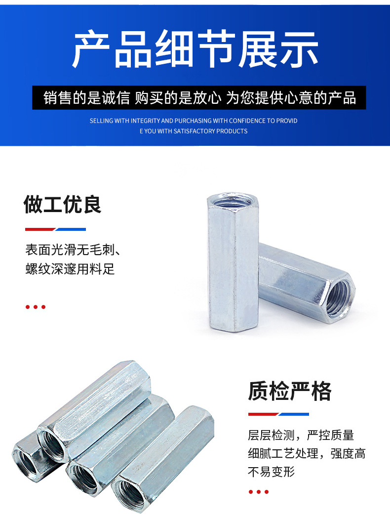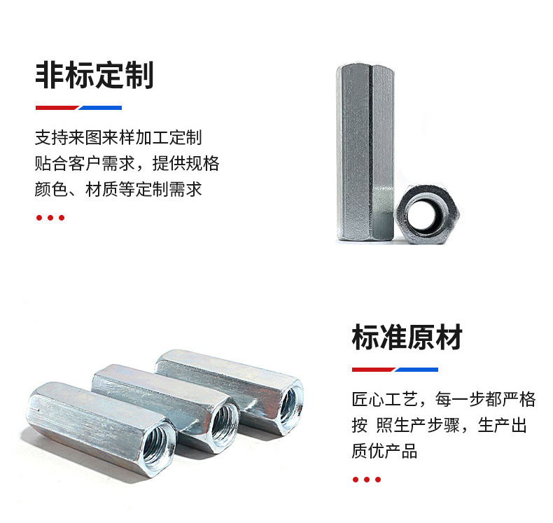 镀锌接头母加长六角螺母丝杆接头螺母方圆固定连接帽M4M5M6M8M18