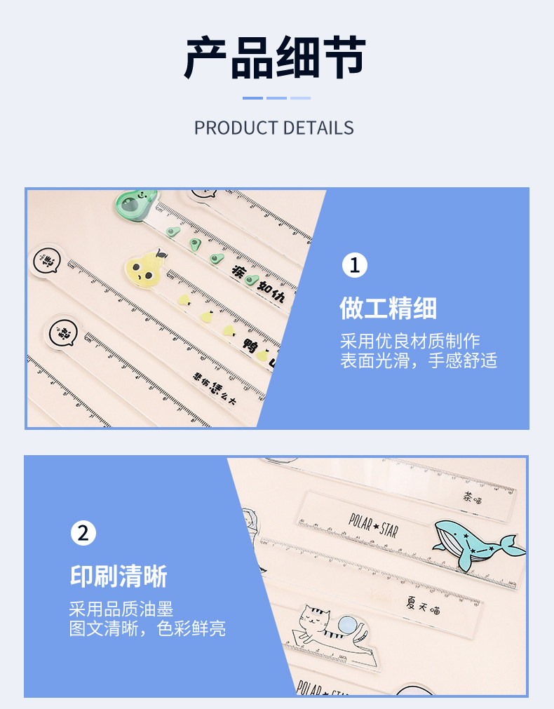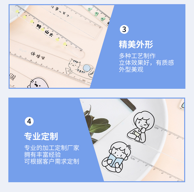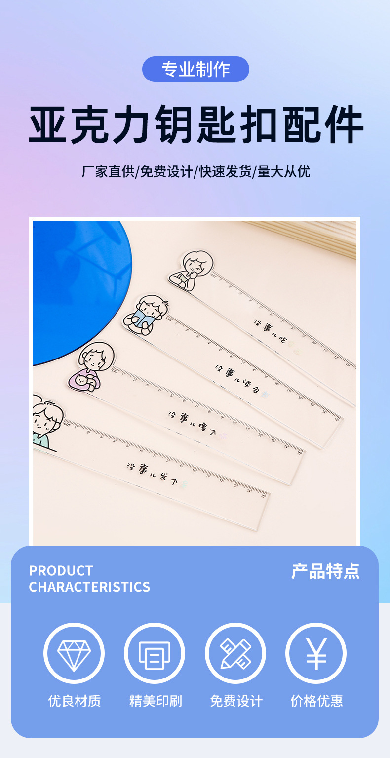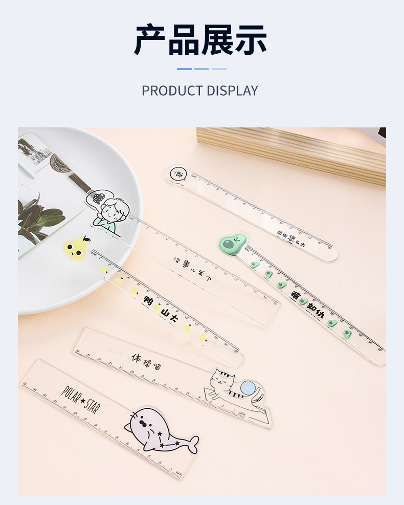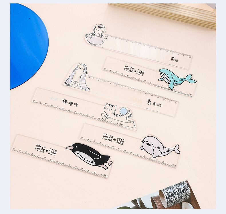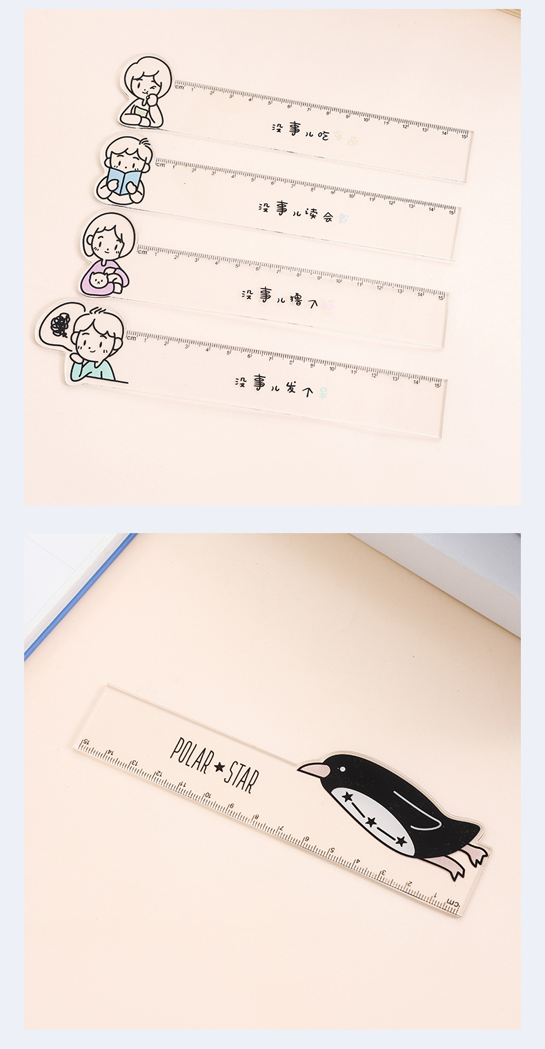新款卡通人物透明直尺亚克力材质可爱小动物直尺厂家直销现货批发