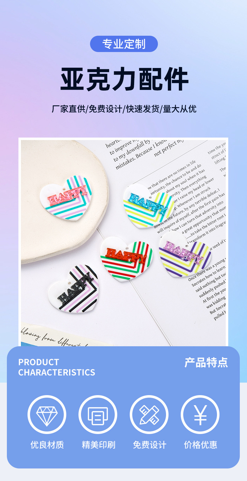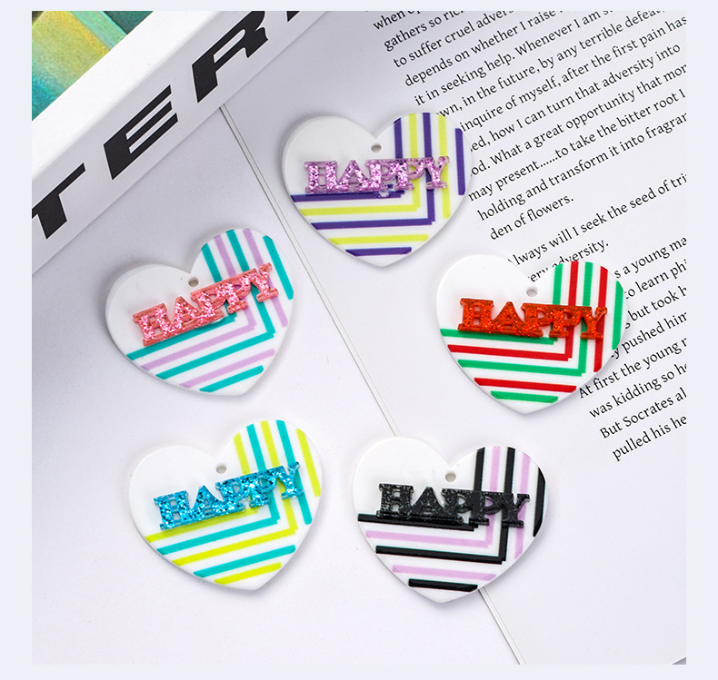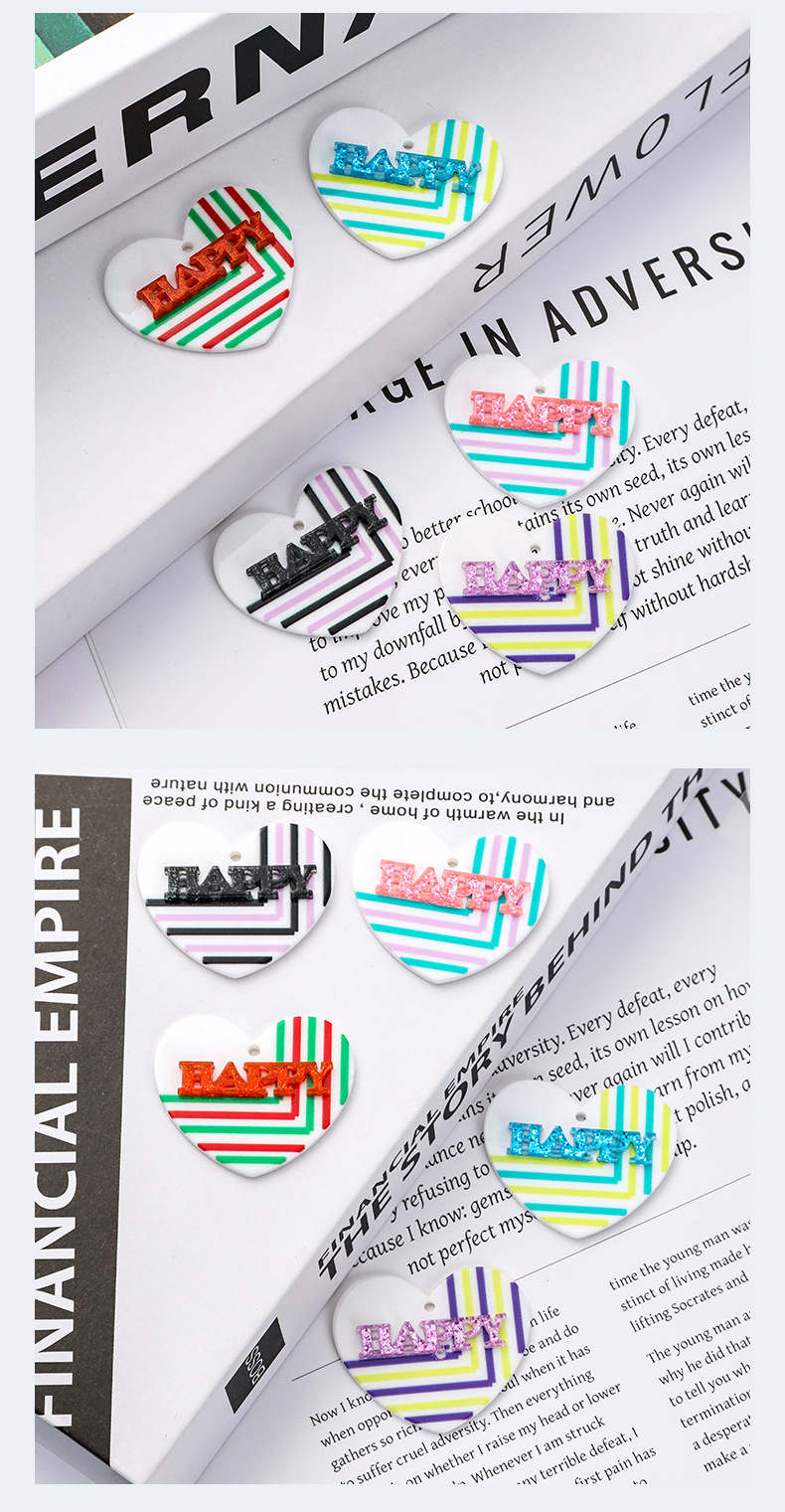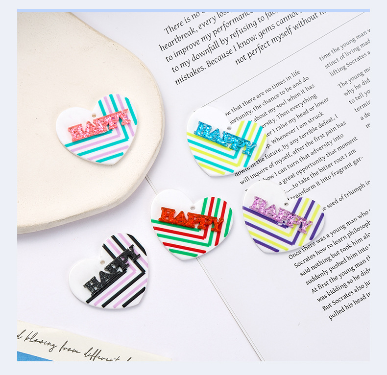 2024新款亚克力条纹树脂爱心彩色带挂孔挂件饰品配饰diy手工配件