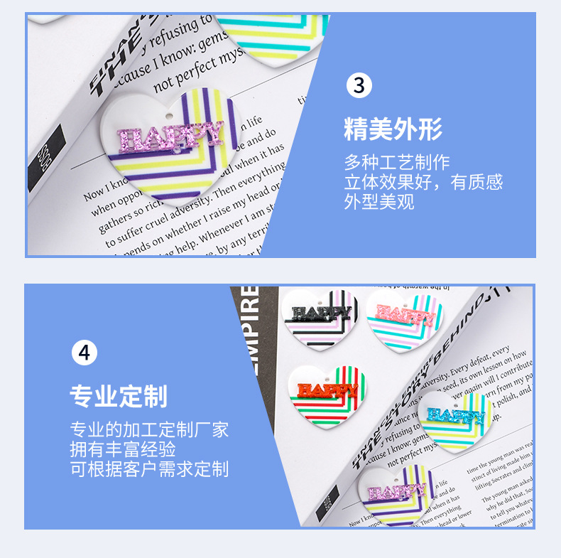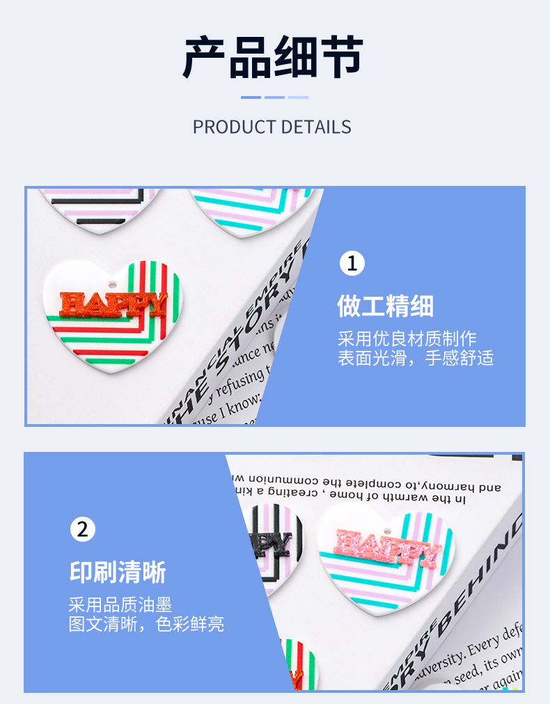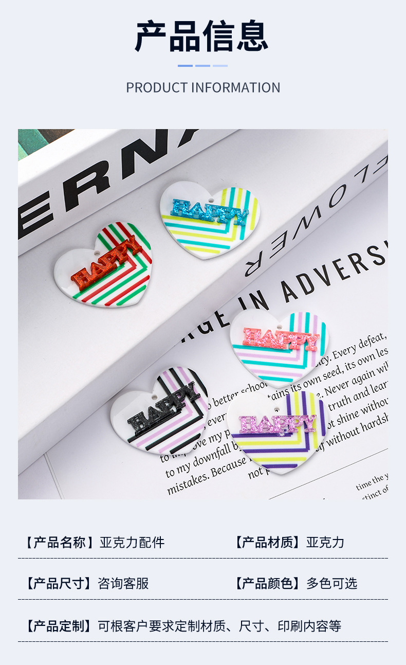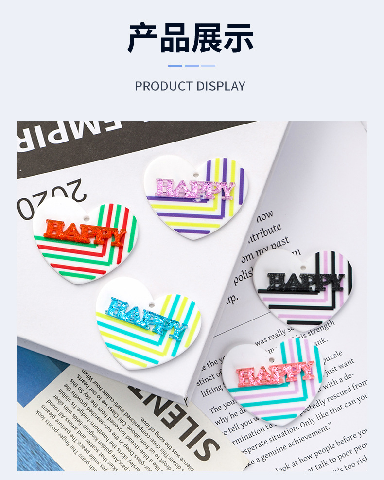 2024新款亚克力条纹树脂爱心彩色带挂孔挂件饰品配饰diy手工配件