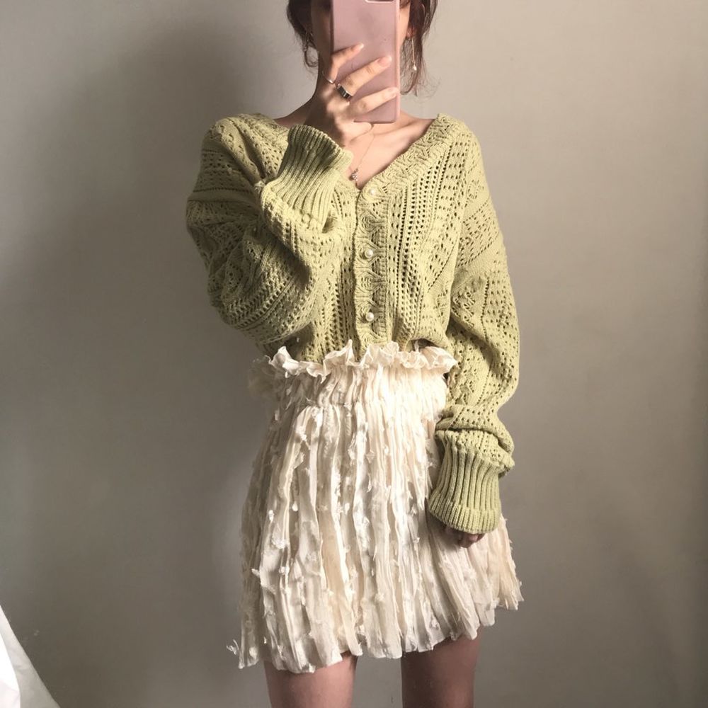 针织衫开衫外套女春秋2022新款韩版宽松超仙甜美镂空网红chic毛衣