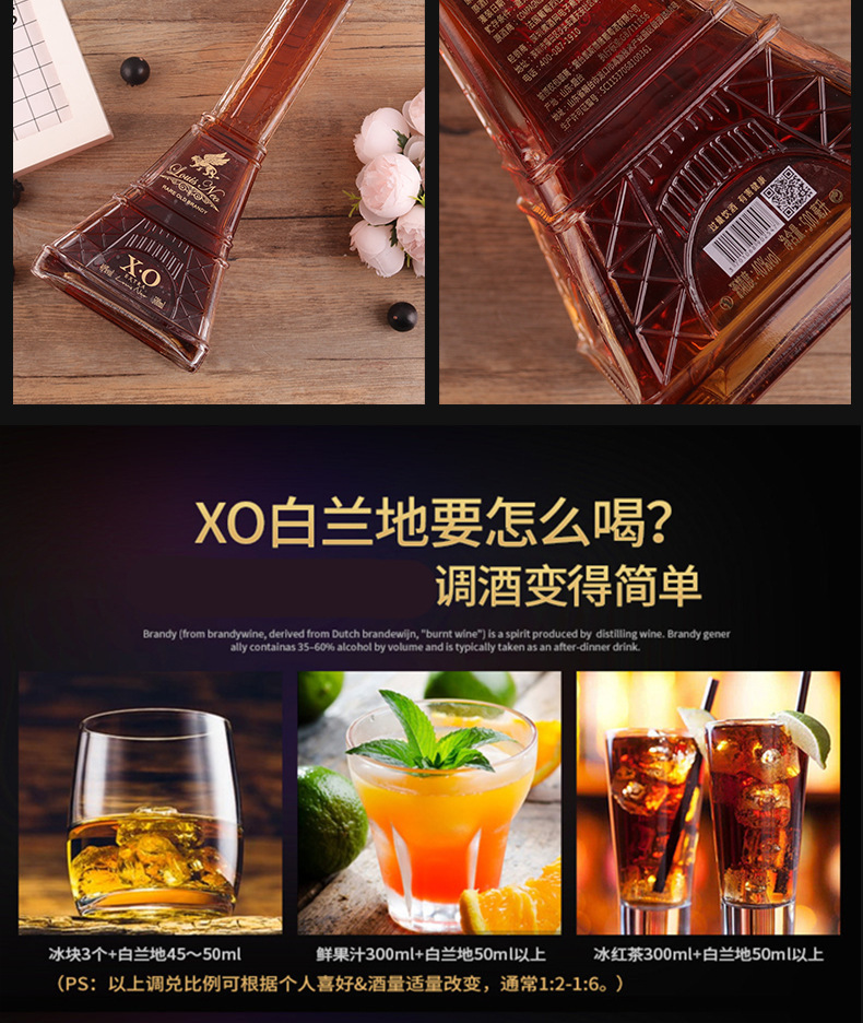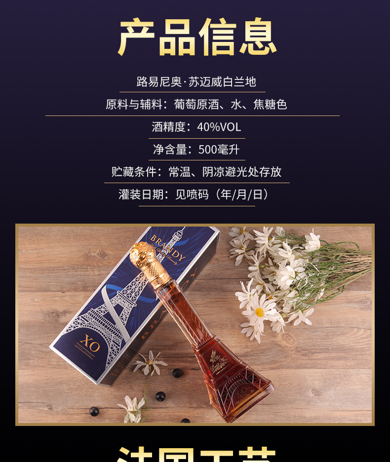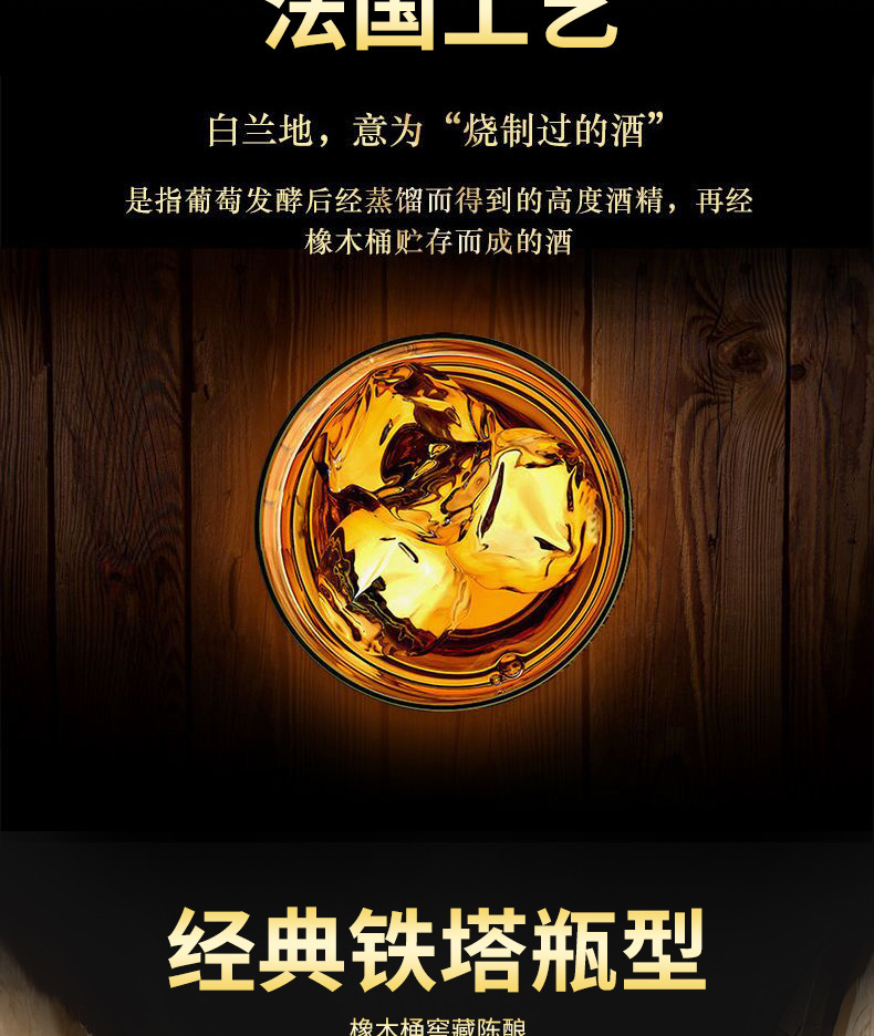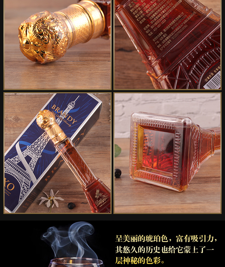 厂家货源法国进口铁塔白兰地一件代发批发包邮700ml高端XO白兰地