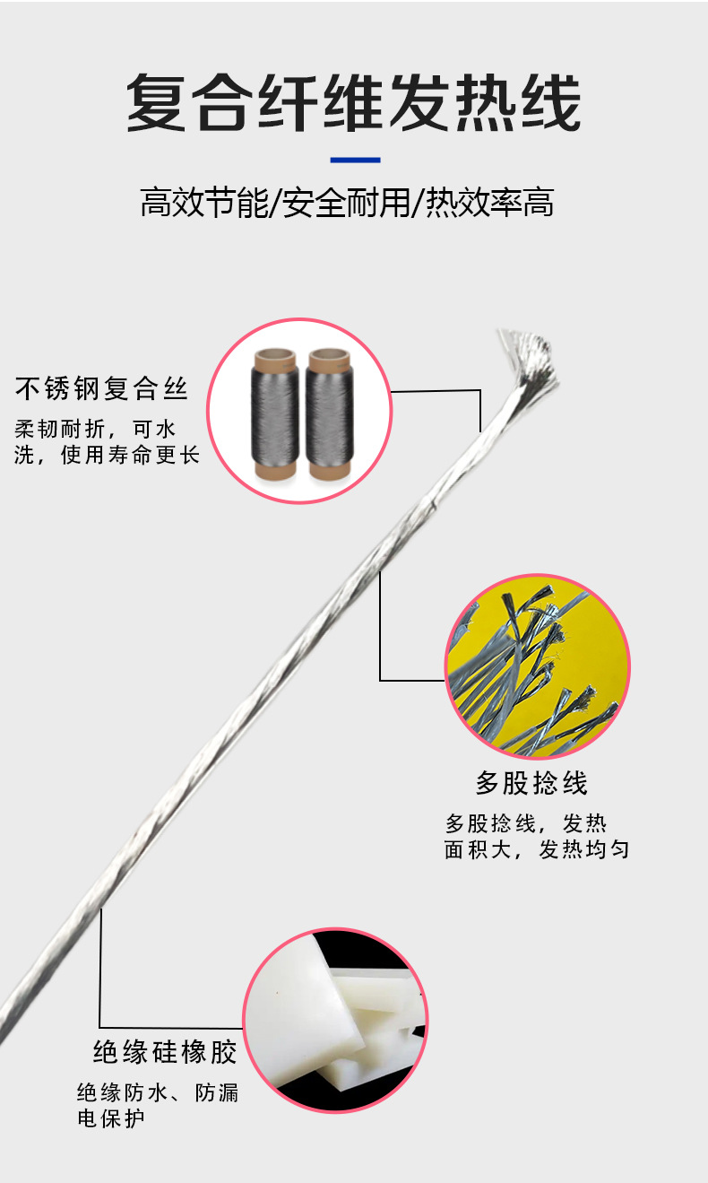 复合纤维发热线批发定制 耐弯折柔性电热线 地暖/理疗毯/汽车加热
