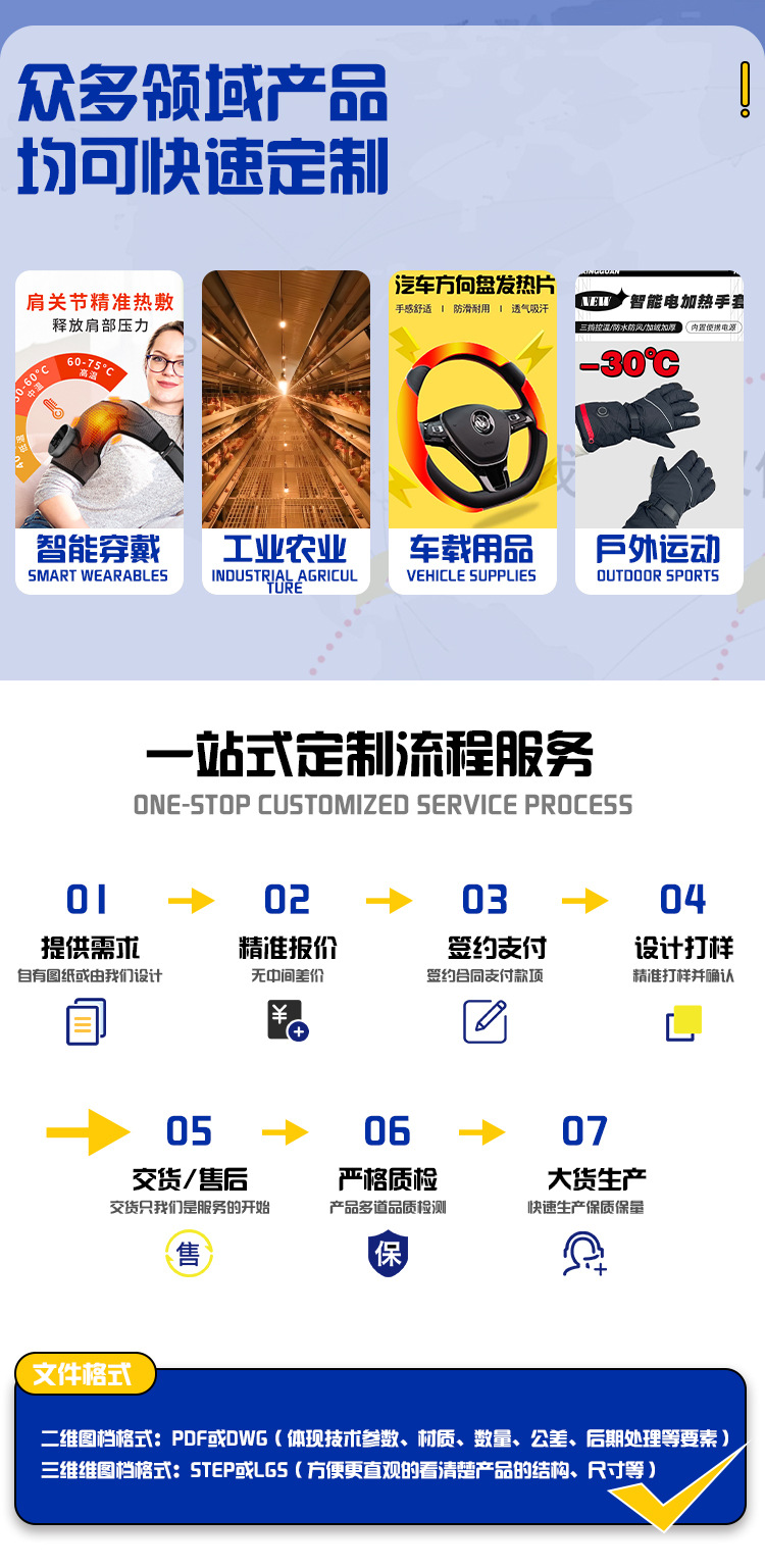 - 适用范围:私家车:轿车、SUV、MPV等方向盘改装电动车:电动自行车、摩托车把手加热