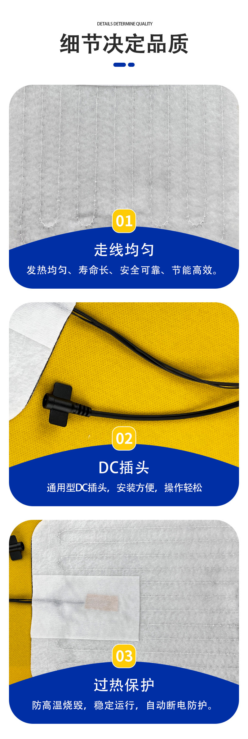 无纺布发热片 DC插头三档调温自动断电保护 冬季保暖电热片可定制