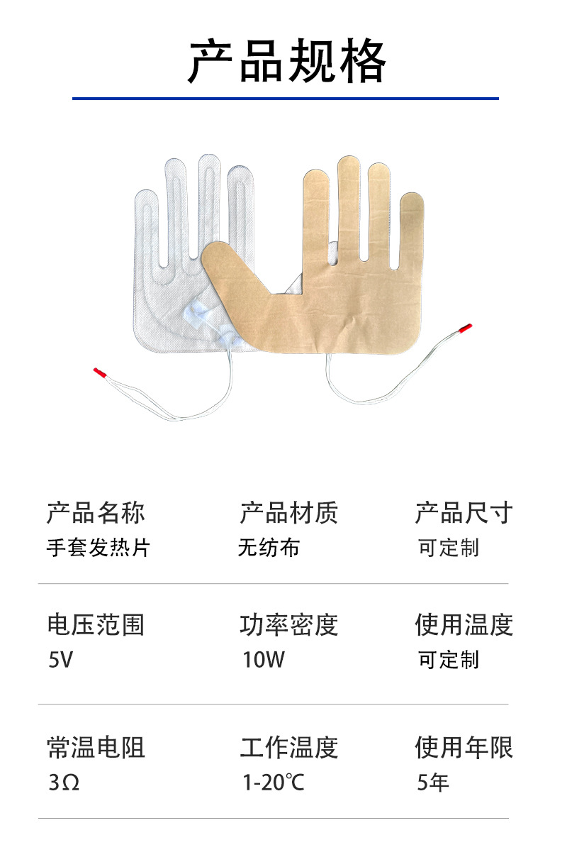 5V五指手套发热片 智能恒温 三秒速热 户外滑雪骑行保暖加工定制