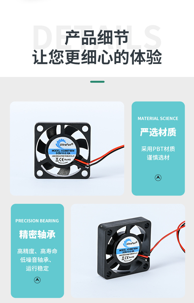 源头工厂供应投影仪风机3007高转速微型含油直流塑料散热风扇设备