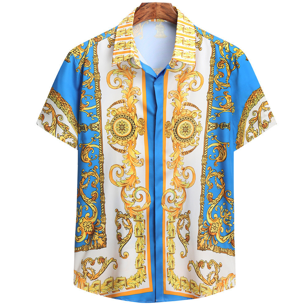 跨境外贸夏季新款男士休闲时尚3D数码印花短袖衬衫大码男士衬衫
