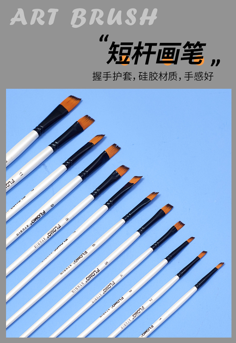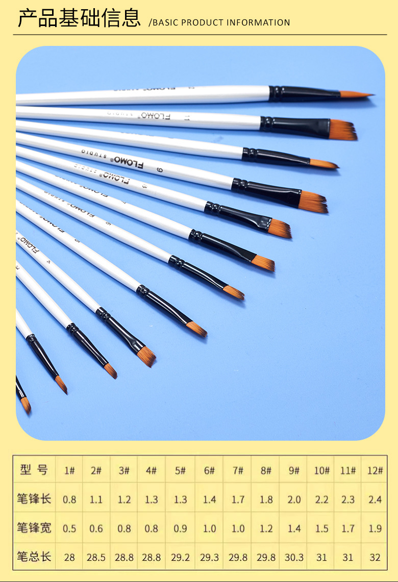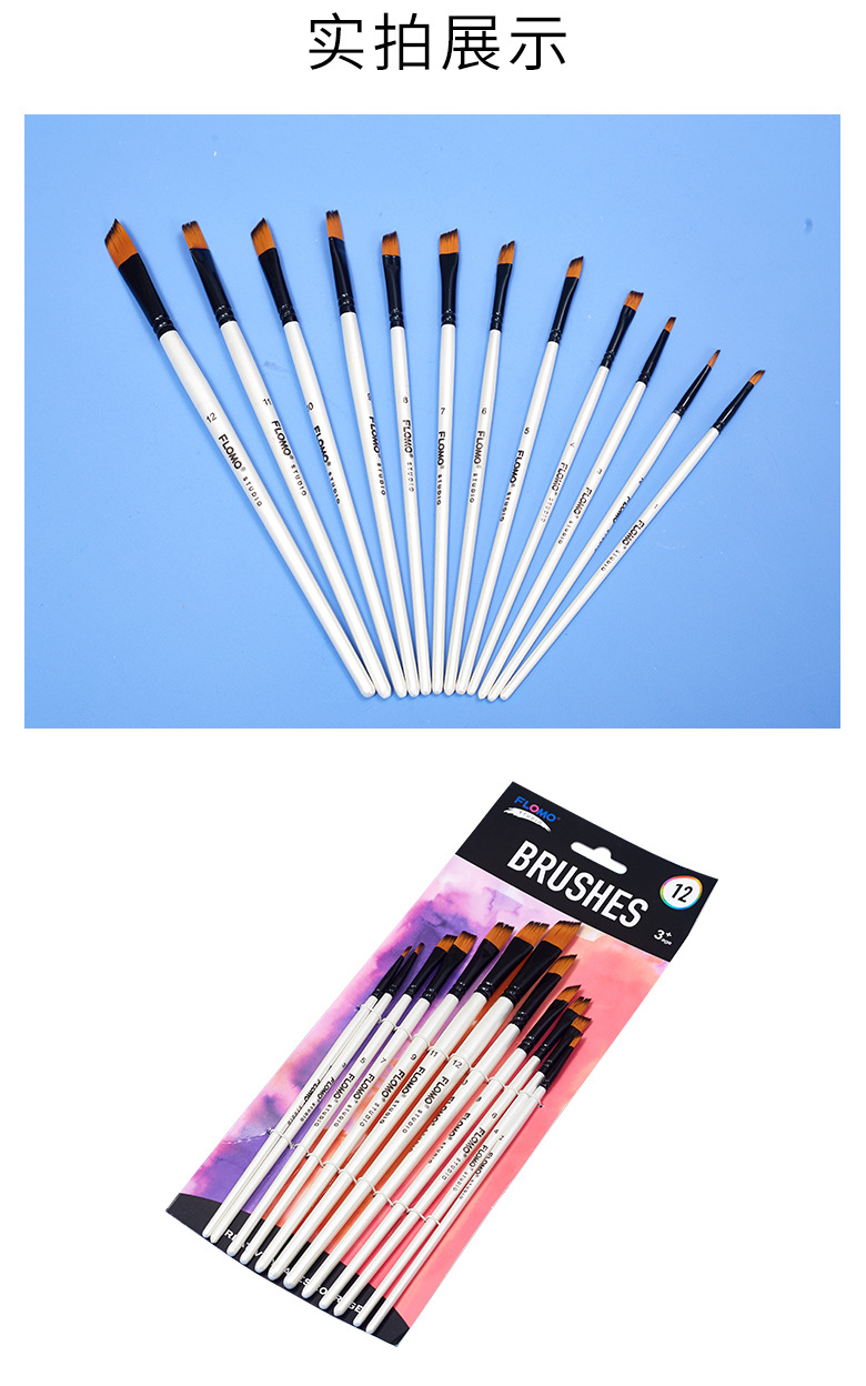跨进批发专供款12支木杆斜峰画笔涂鸦绘画笔套装水粉画水彩笔笔刷