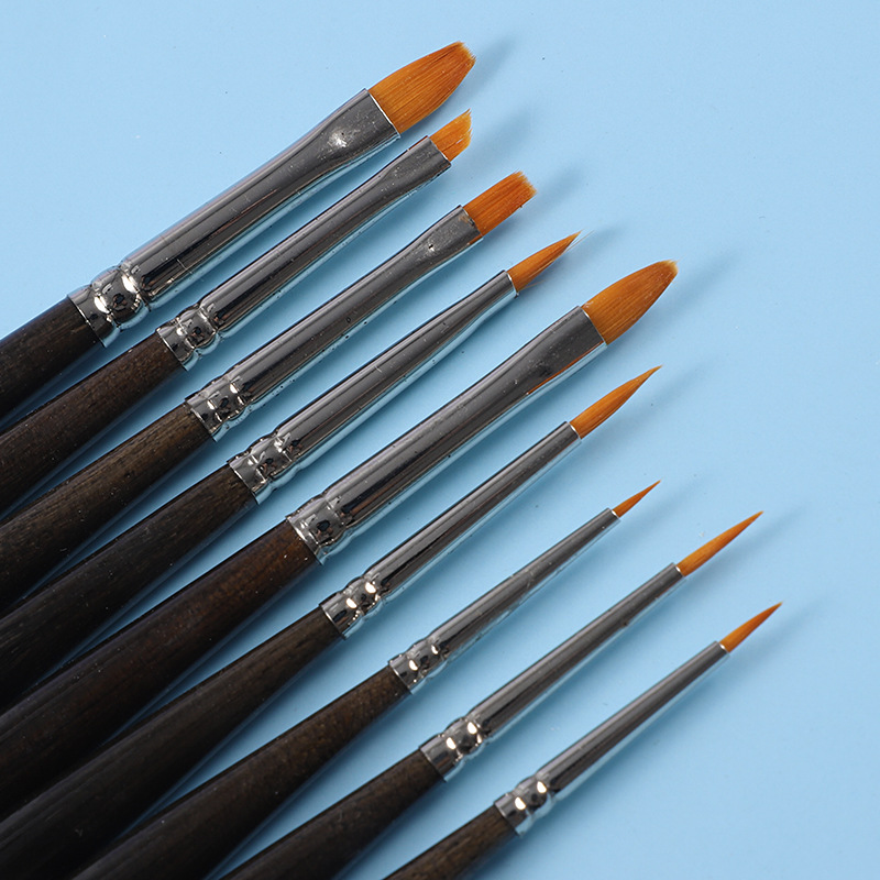 厂家供应美术画笔圆杆木柄丙烯颜料油画笔套装9支装 彩绘勾线笔