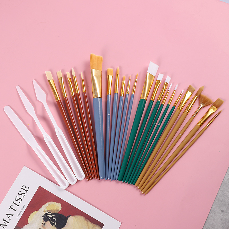 美术用品工具25支桶装油画笔套装 丙烯颜料彩绘水粉水彩油画笔