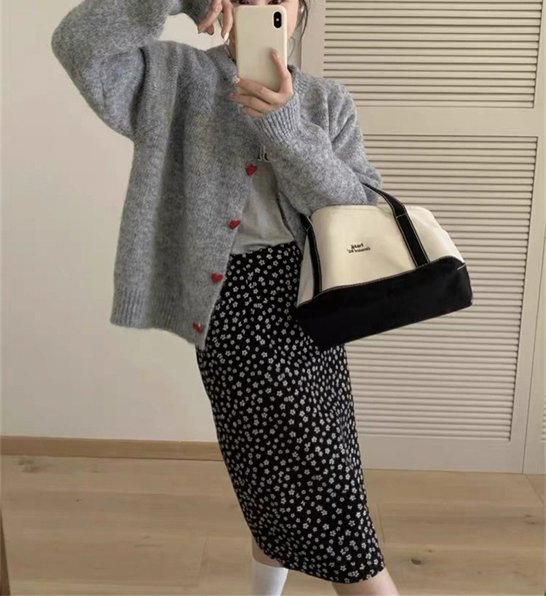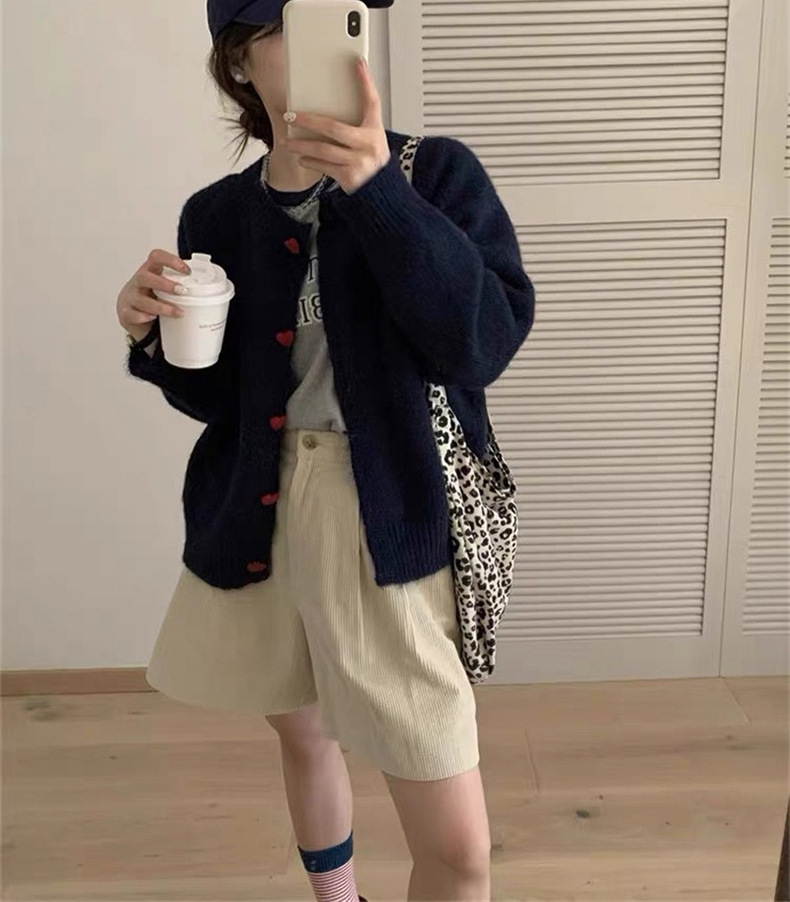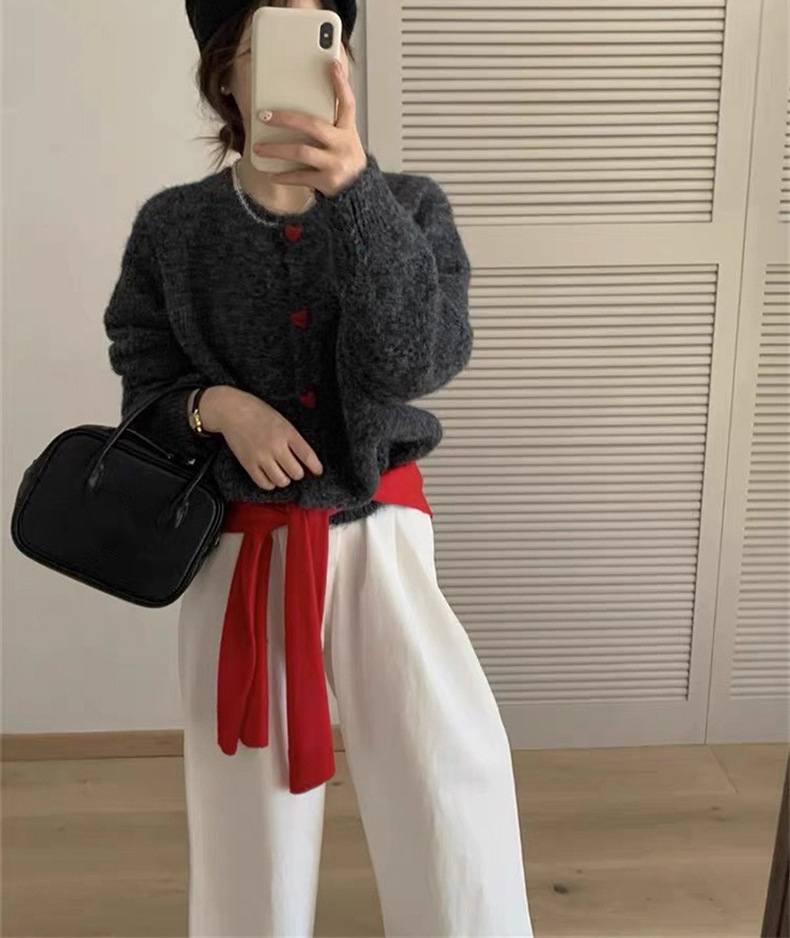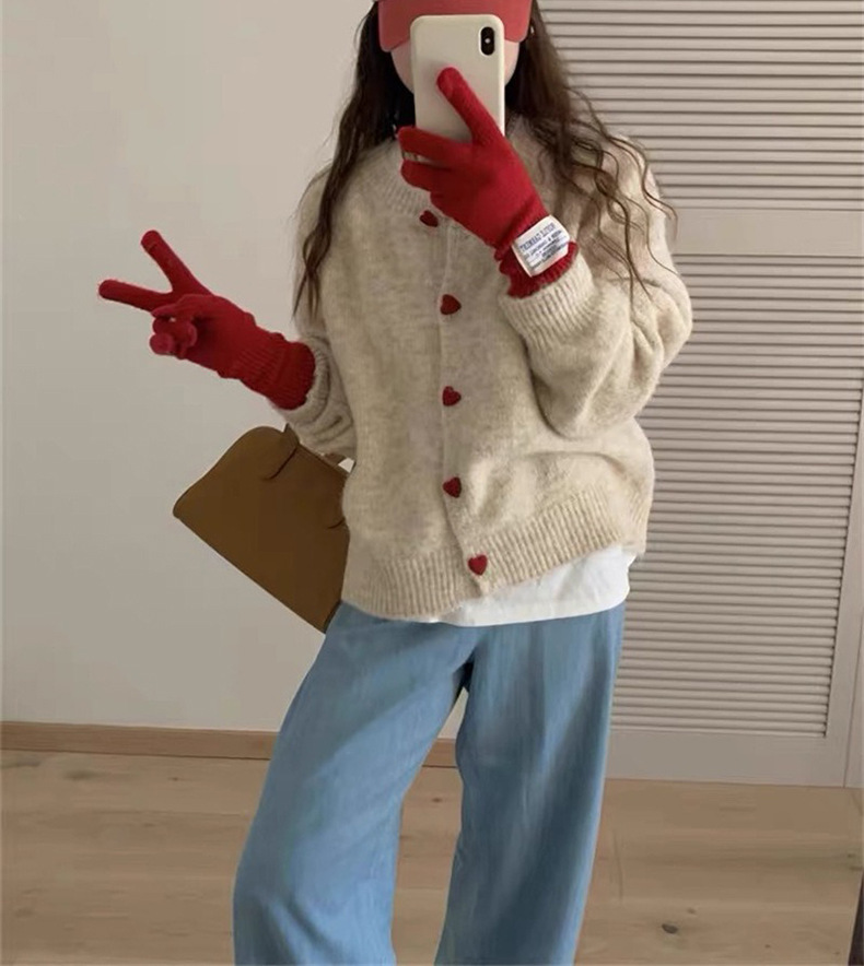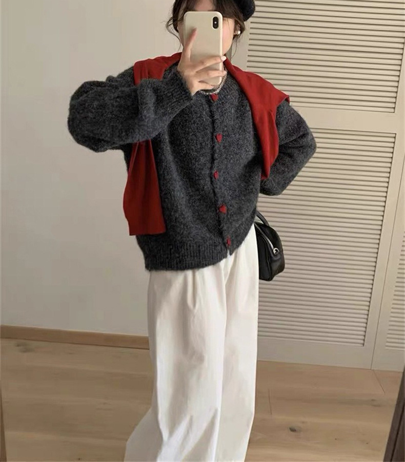 韩版软糯爱心纽扣圆领毛衣外套女秋季新款设计感慵懒宽松针织开衫