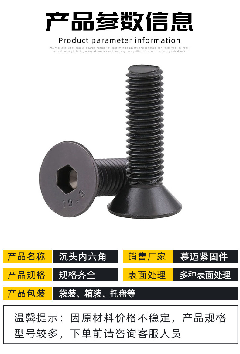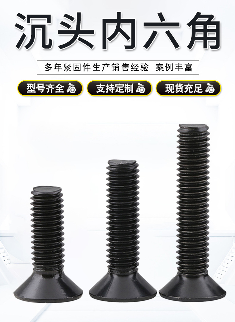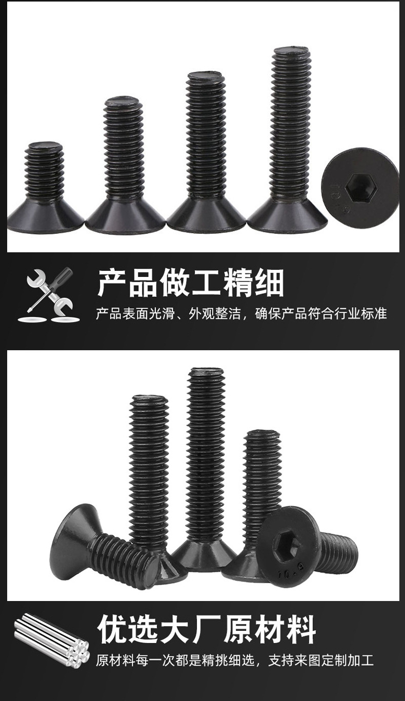 10.9级沉头内六角螺丝正反丝螺钉平头内六角镀黑锌沉头内六角机丝
