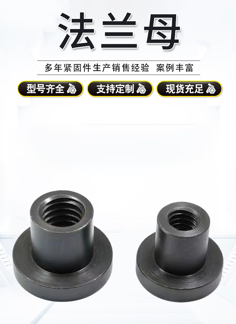 法兰螺母高强度法兰螺母T型螺母六角法兰带垫螺母非标发黑T型螺帽