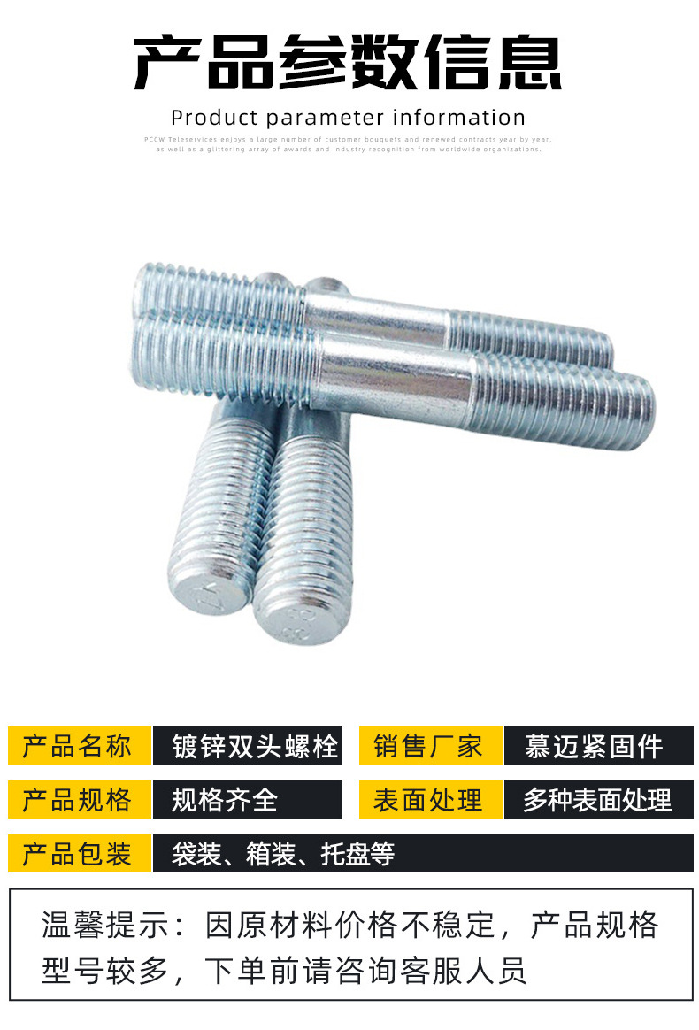 镀锌双头螺栓 8.8级两头牙螺丝/螺柱异型双头螺丝 镀锌 双头螺栓