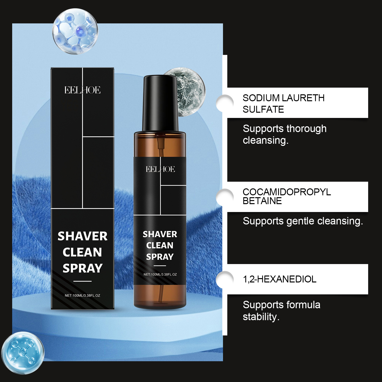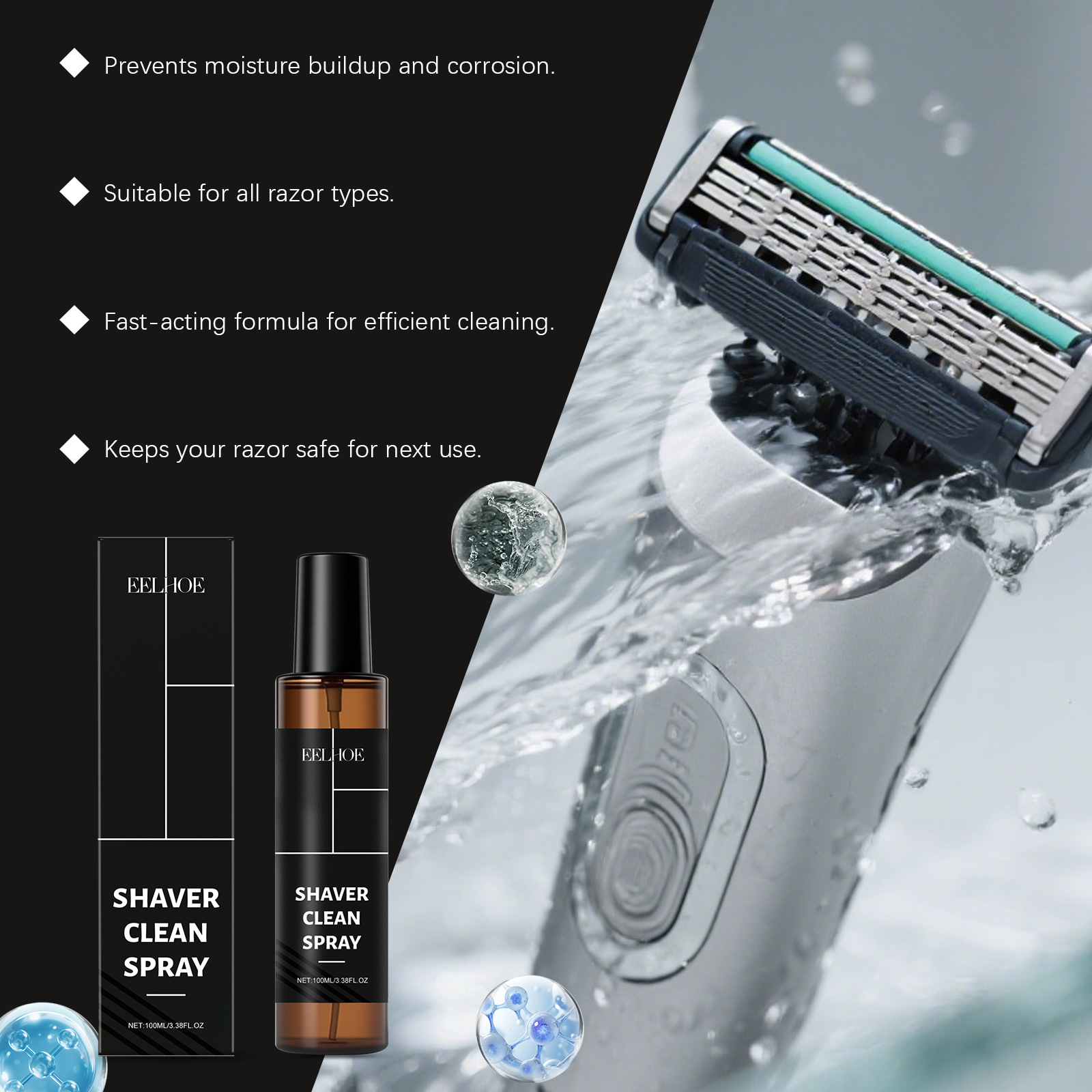 EELHOE剃须刀清洁喷雾 去污除渍保持刀头干净适合日常清洁护理