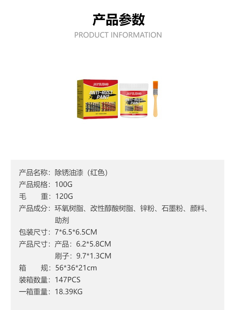 Jayusing 红色除锈油漆 铁门栏杆金属防锈清洁翻新防锈涂层底漆