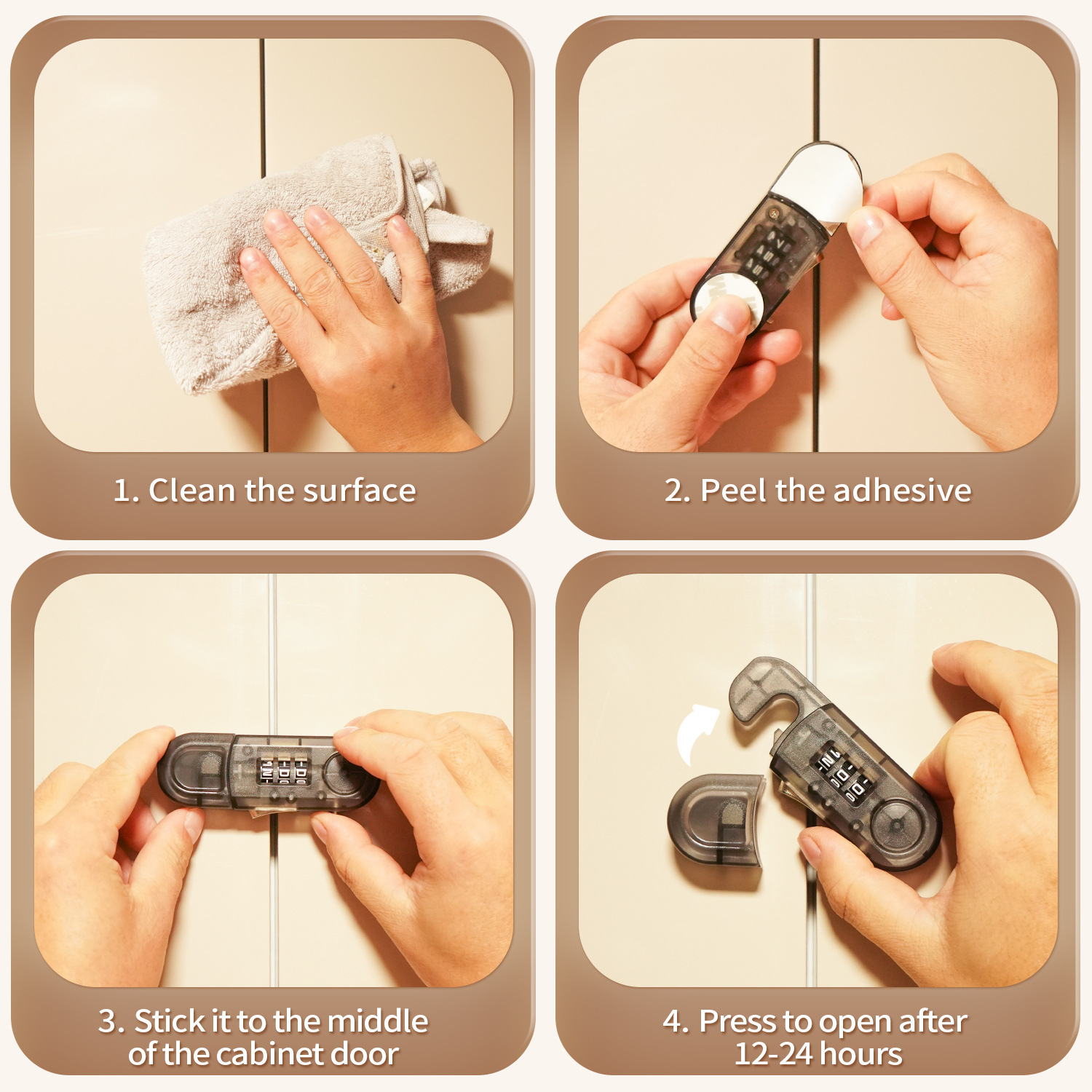 定制儿童密码橱柜锁免打孔对开门冰箱锁3位密码锁储物柜锁专利