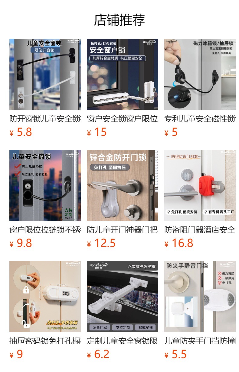 窗户限位器移门锁扣儿童安全防护锁高层防开窗锁阻门器窗户固定器