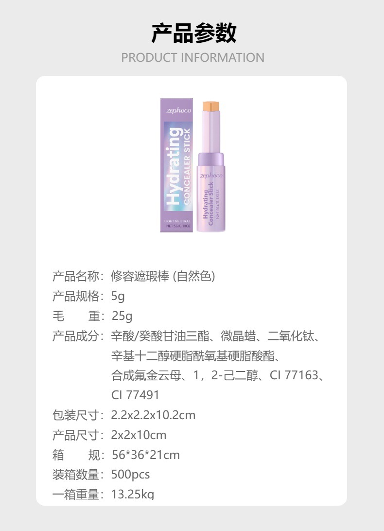 zephoco 修容遮瑕棒 自然色日常便携面部顺滑鼻影轮廓立体遮瑕棒