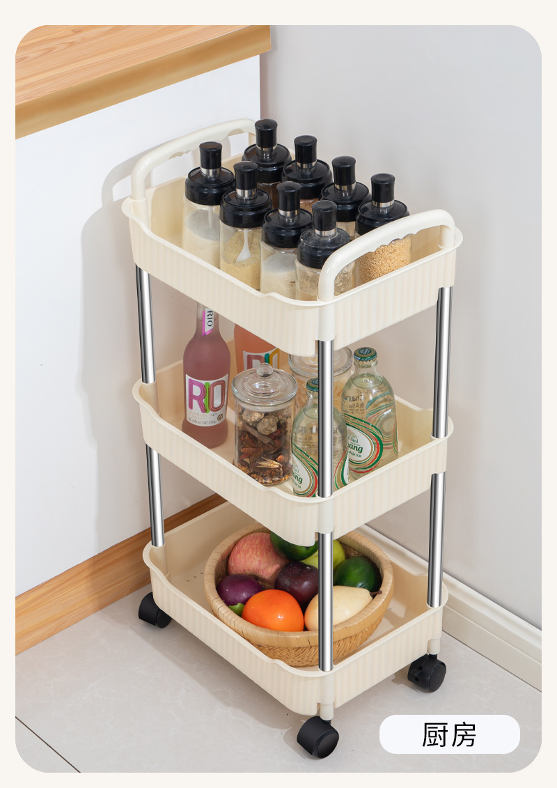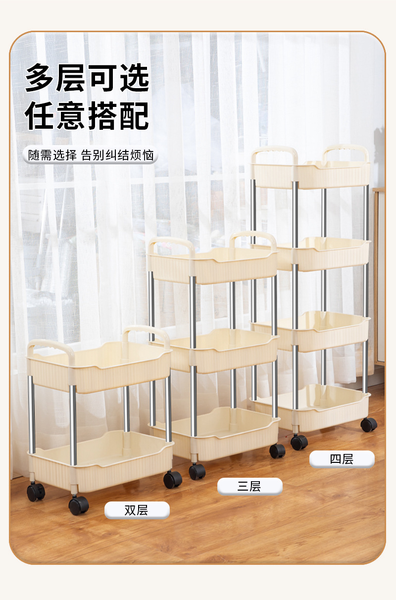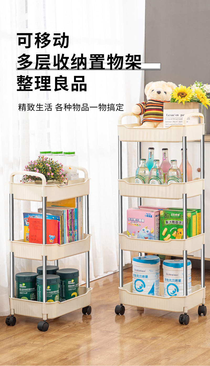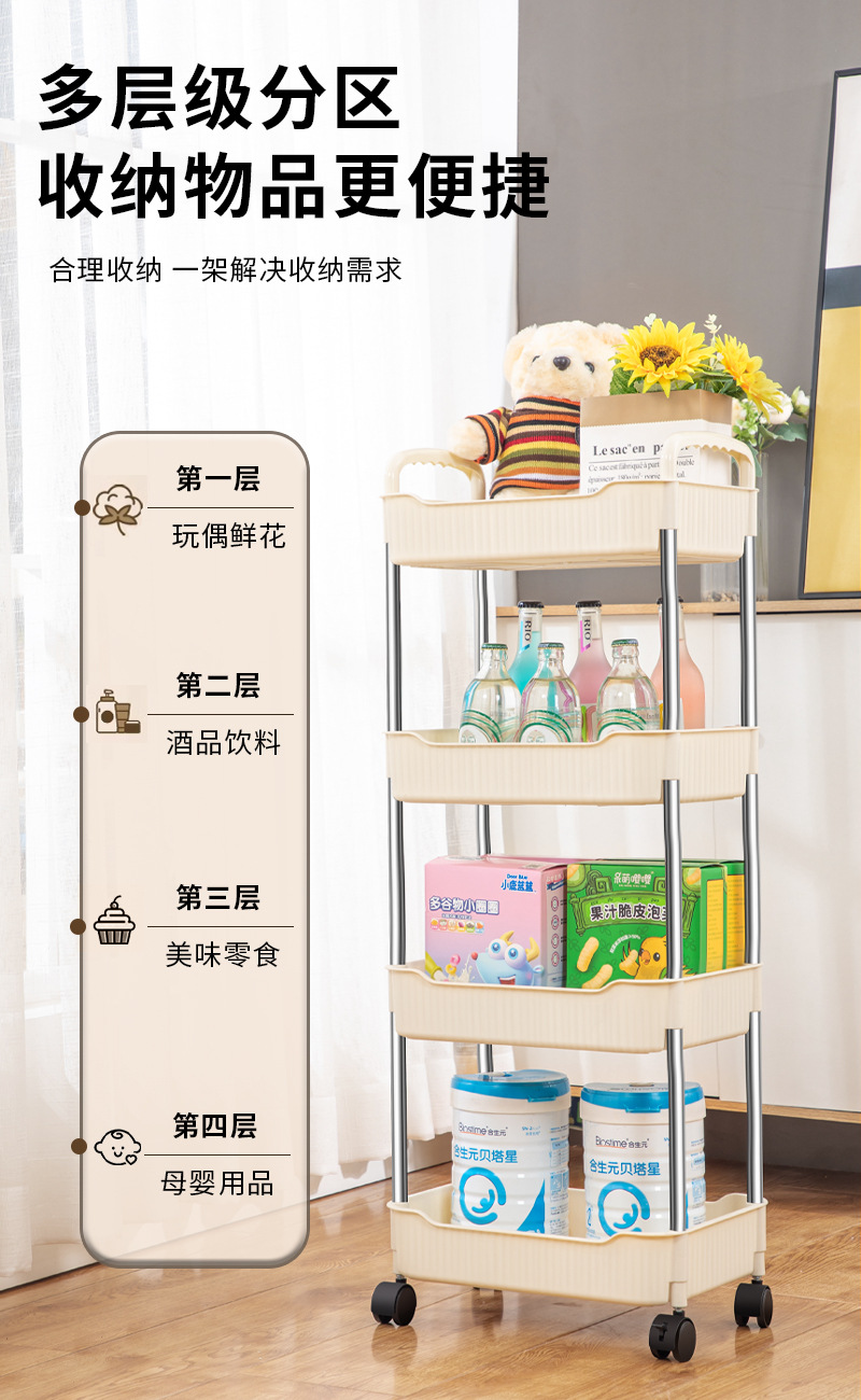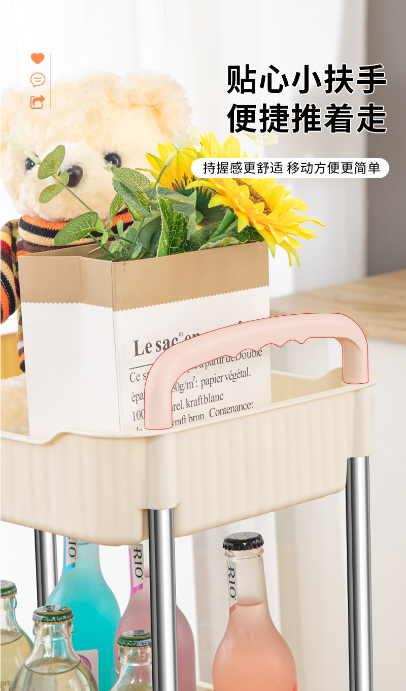 奶油风小推车置物架宝宝零食玩具可移动收纳架厕所多层储物整理架