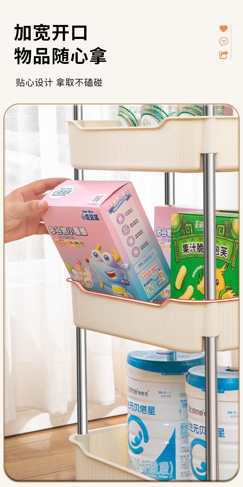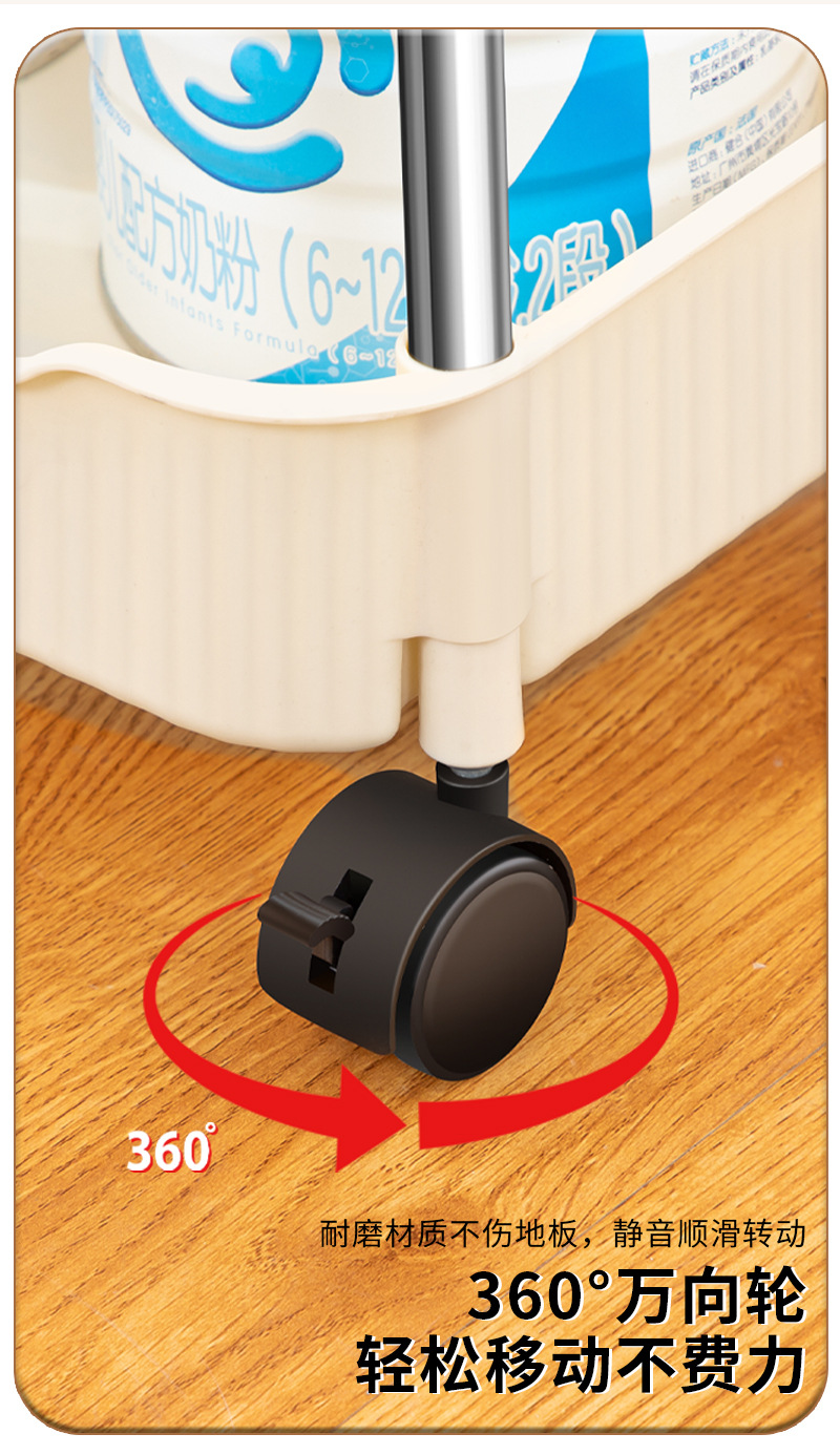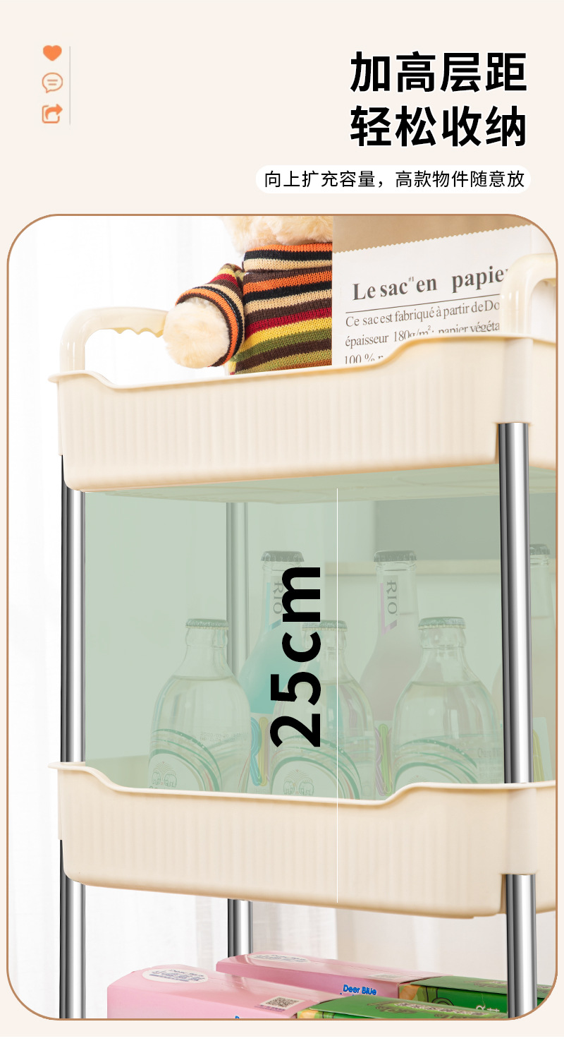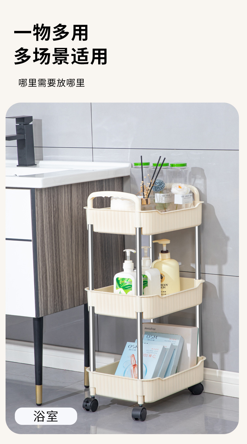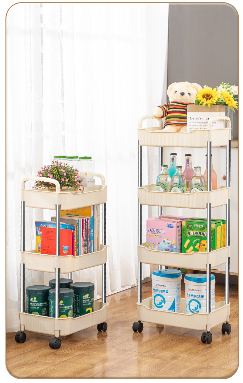 奶油风小推车置物架宝宝零食玩具可移动收纳架厕所多层储物整理架