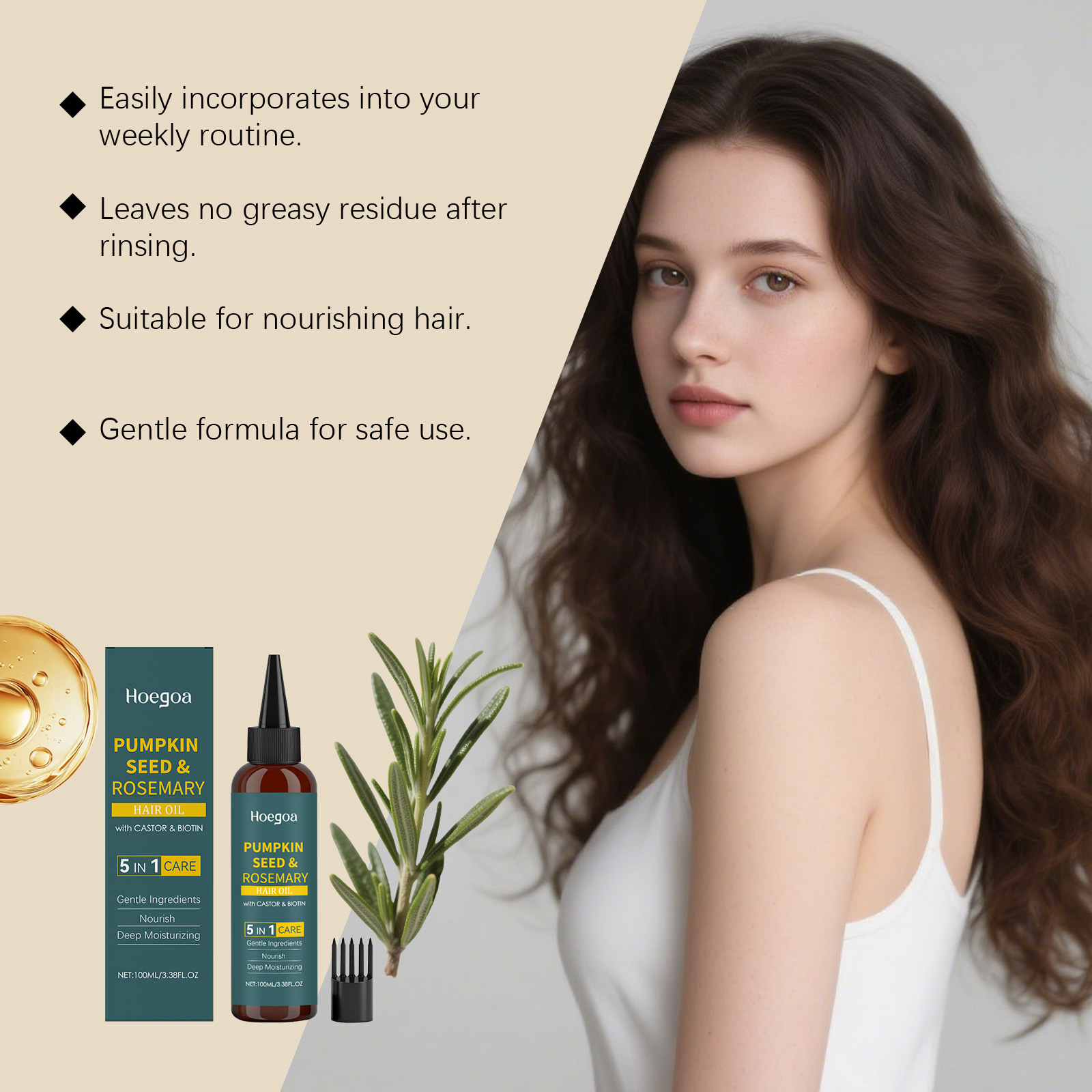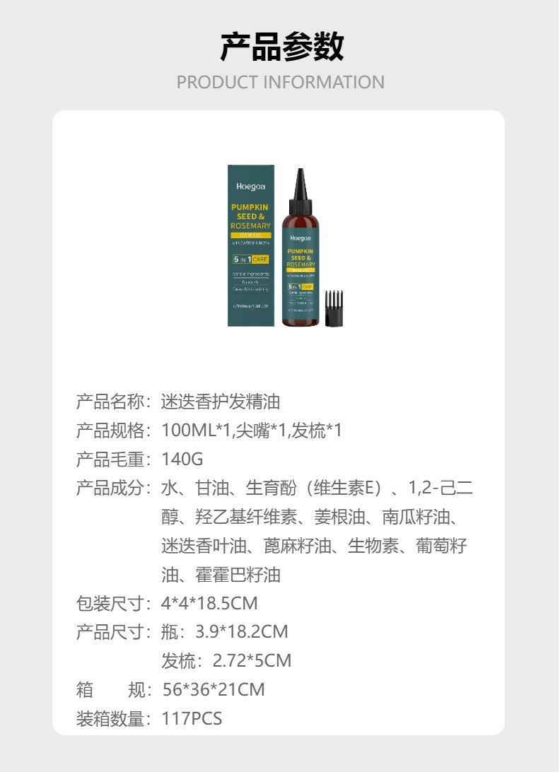 HOEGOA迷迭香护发精油 温和滋养柔顺秀发头皮按摩外用涂抹精华油