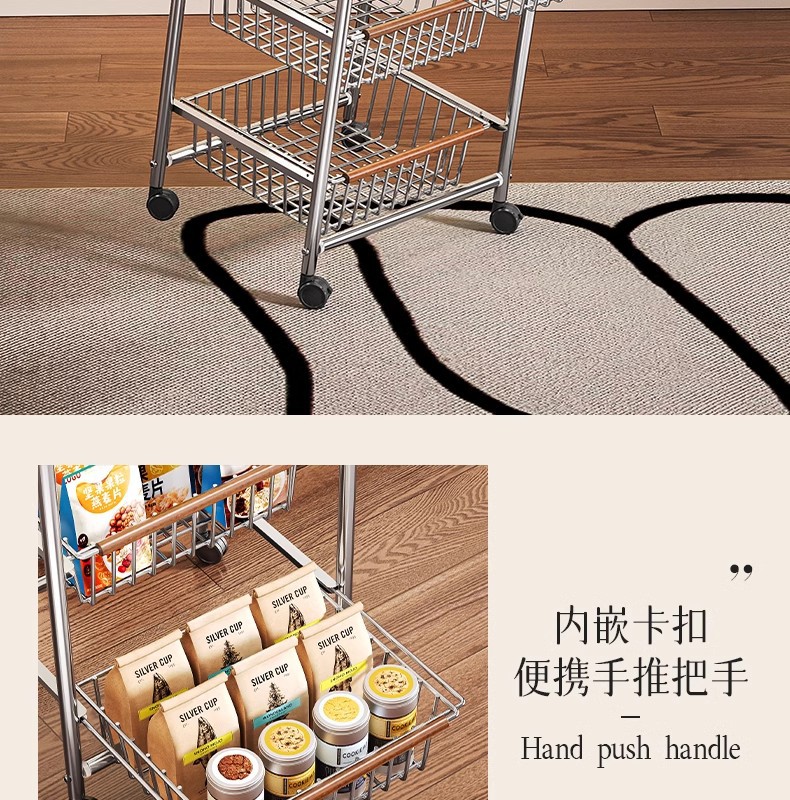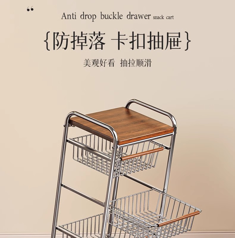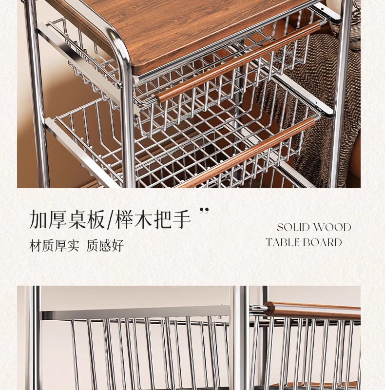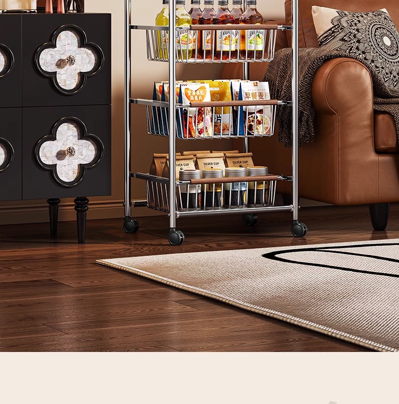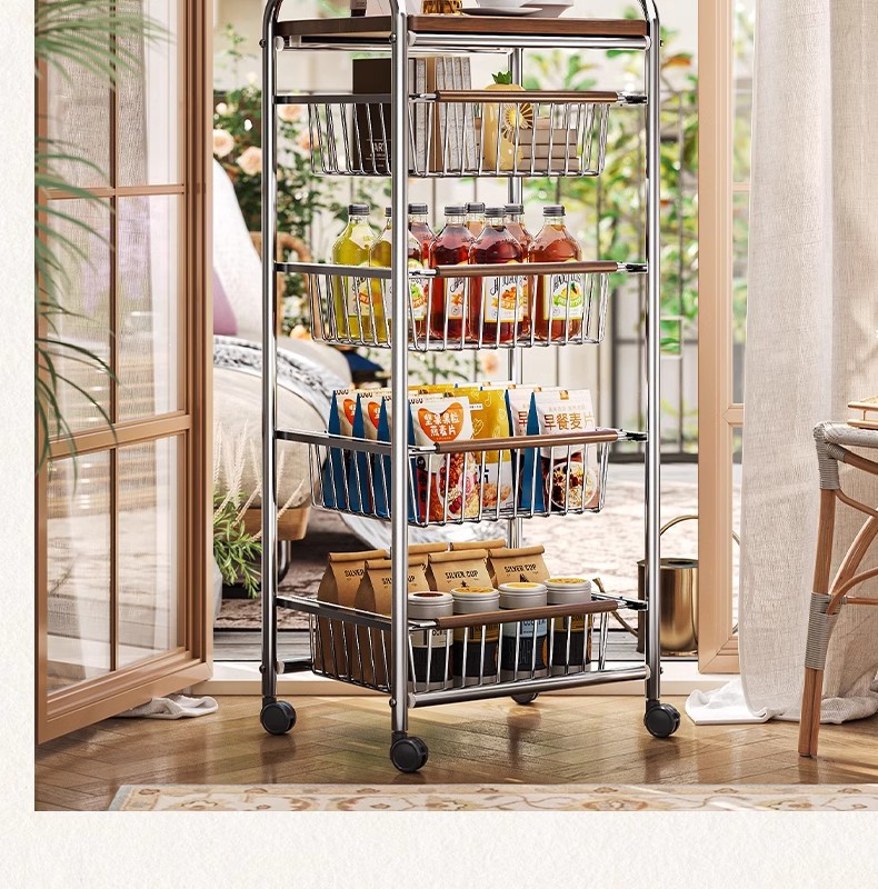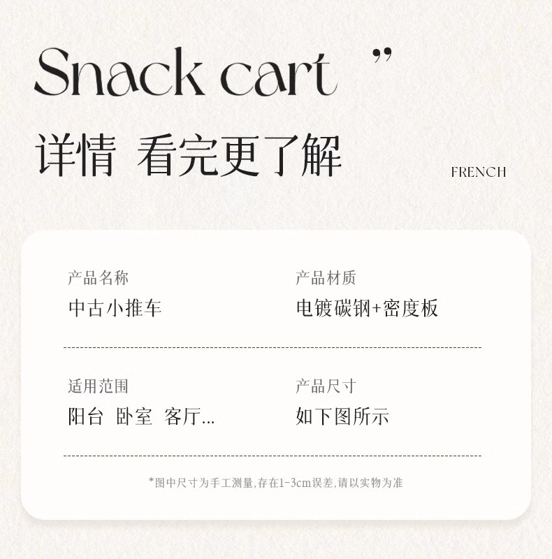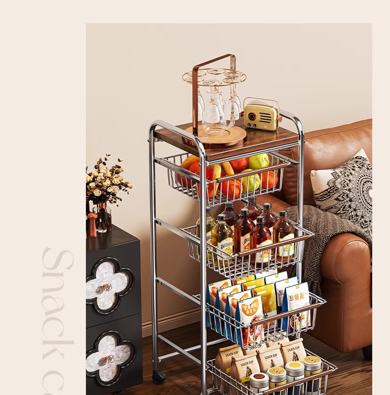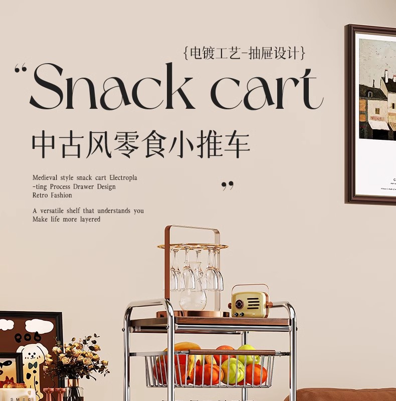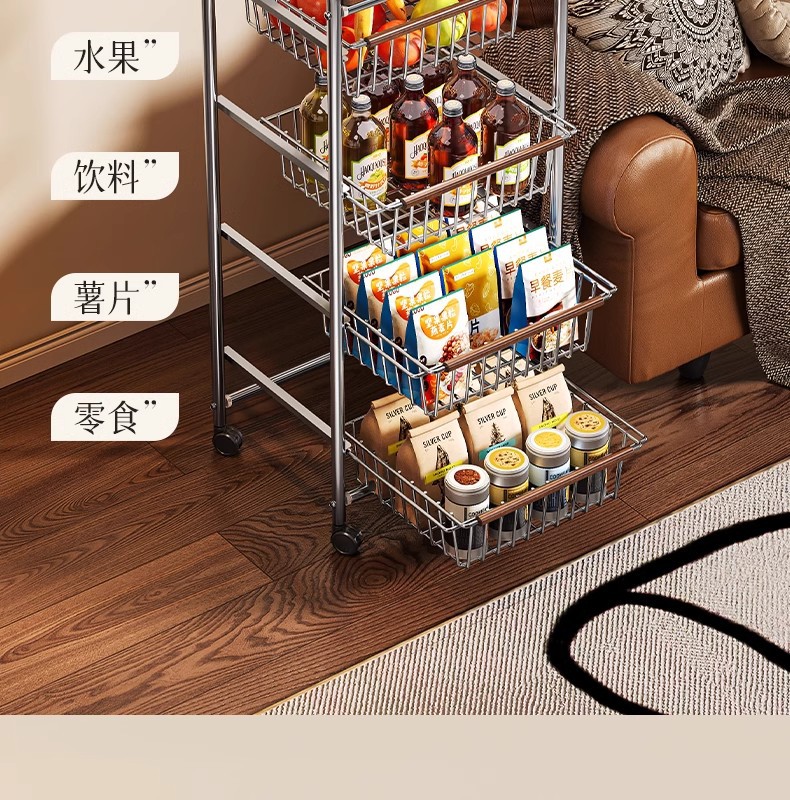 中古风零食置物架客厅小推车多层收纳架可移动厨房水果蔬菜储物架