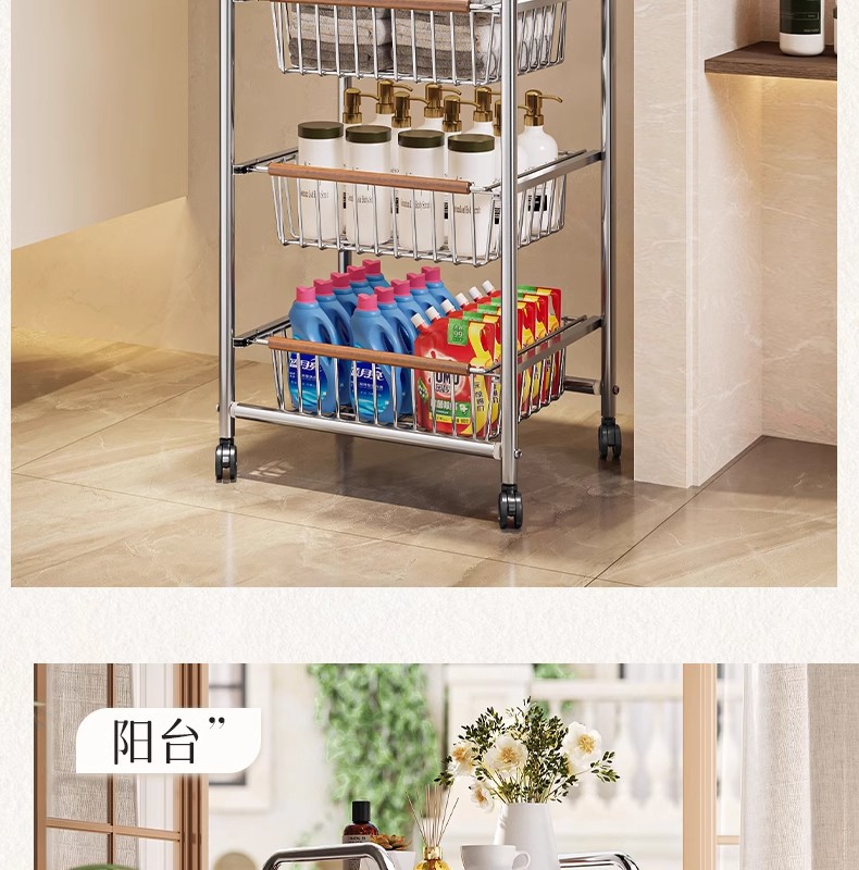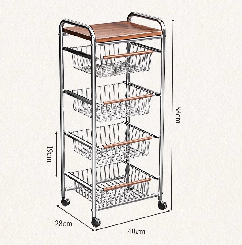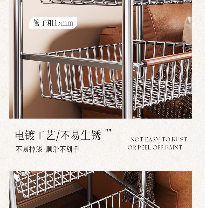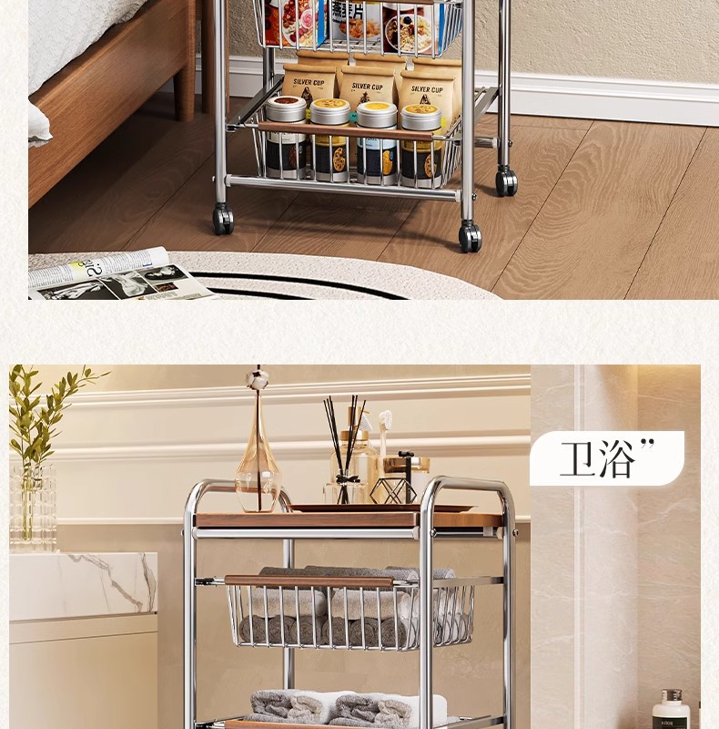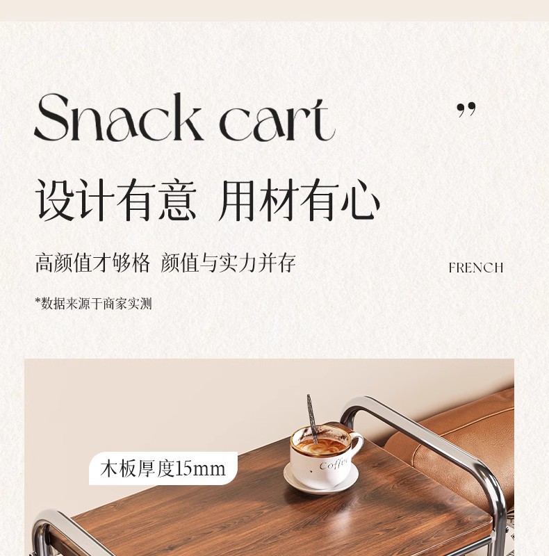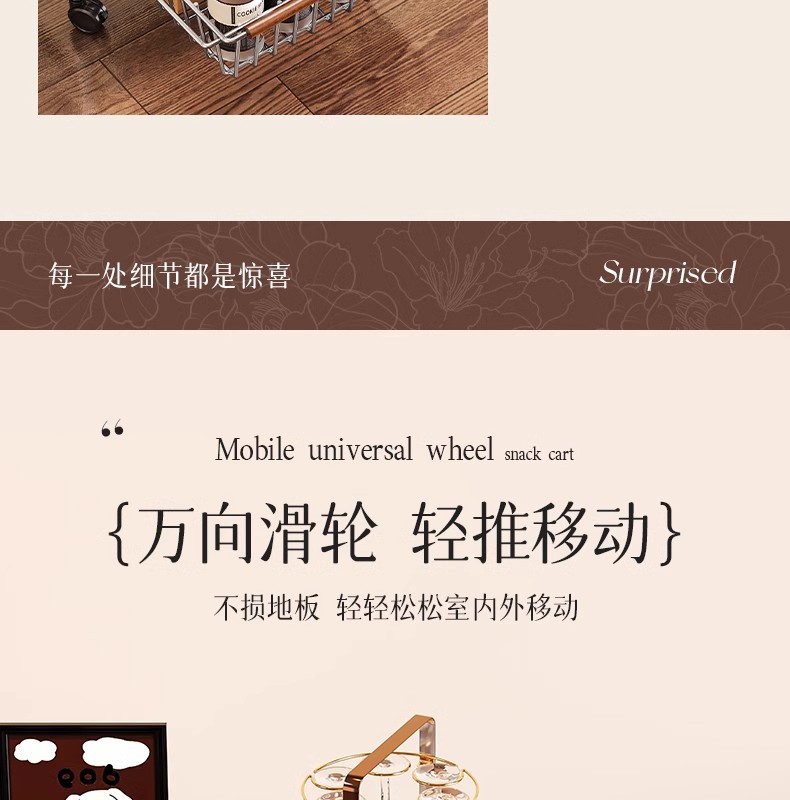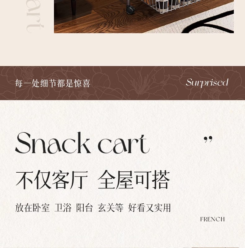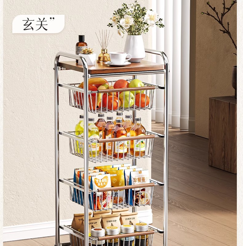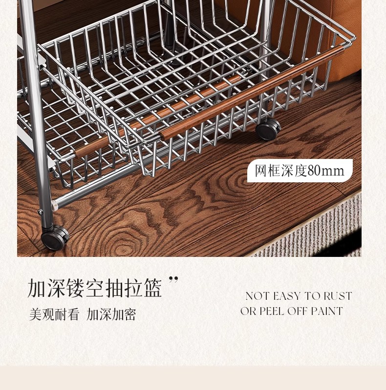 中古风零食置物架客厅小推车多层收纳架可移动厨房水果蔬菜储物架