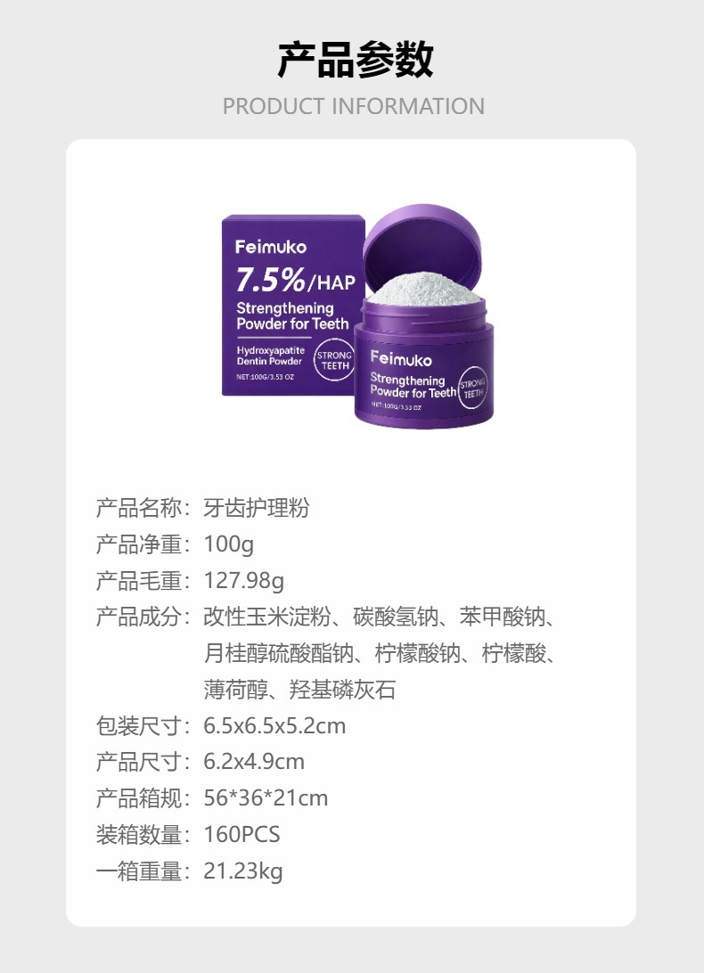 Feimuko 牙齿护理粉 口腔呵护牙龈清洁牙齿薄荷清新口气亮泽牙齿