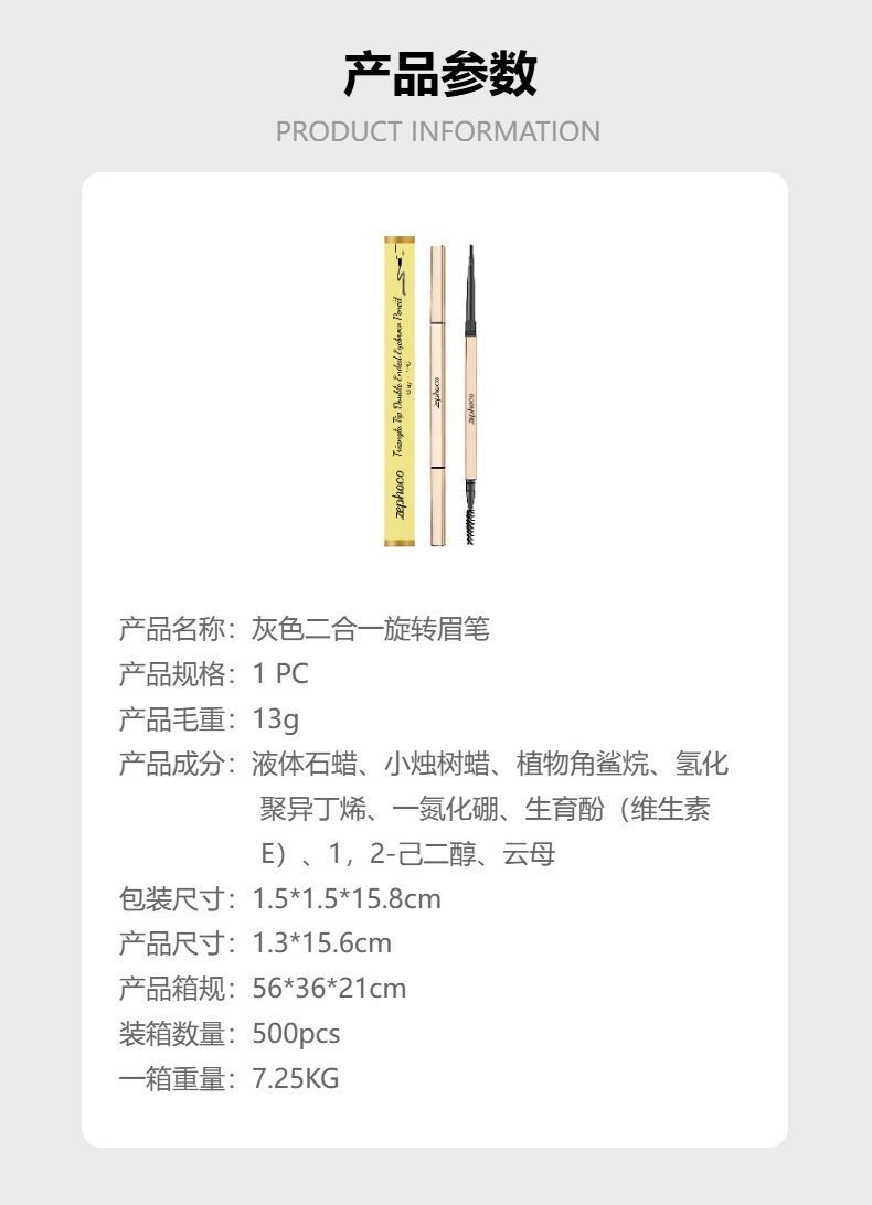 zephoco灰色二合一旋转眉笔 立体显色易上妆自然上色日常修饰眉形
