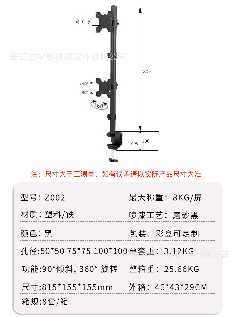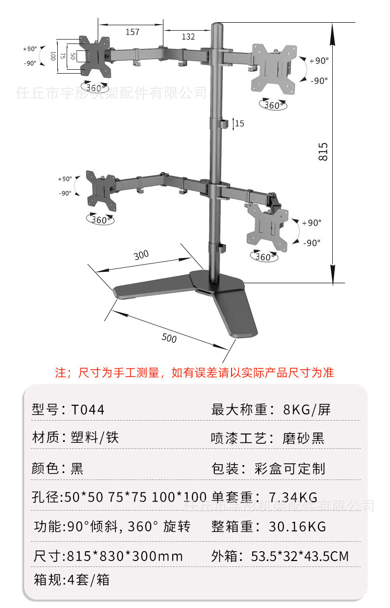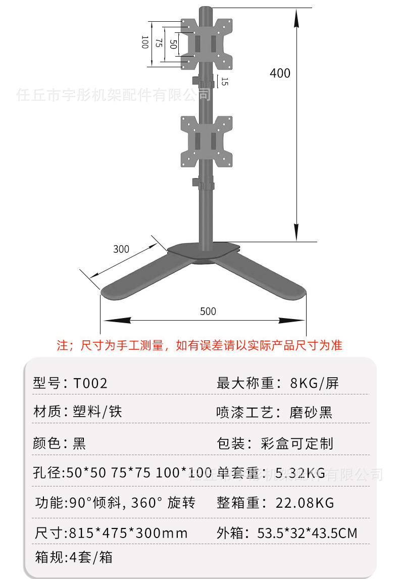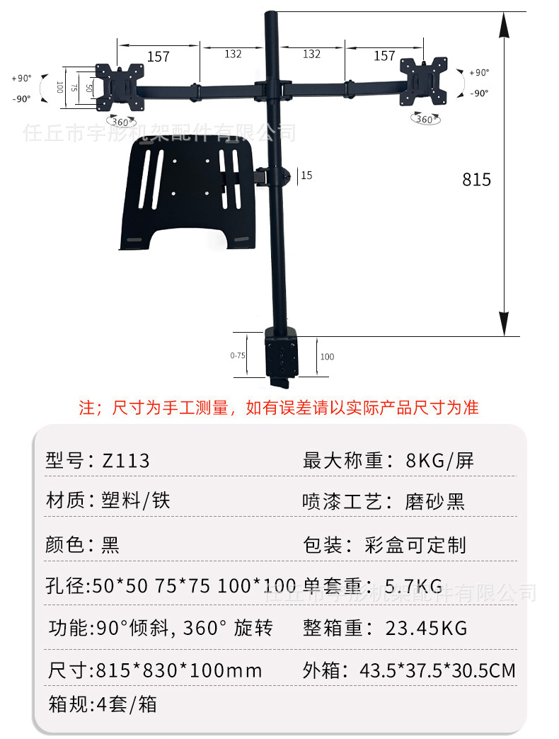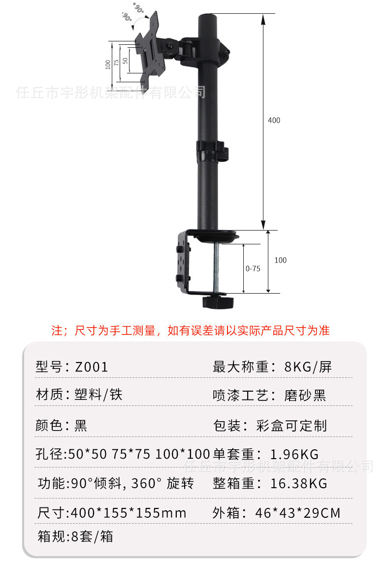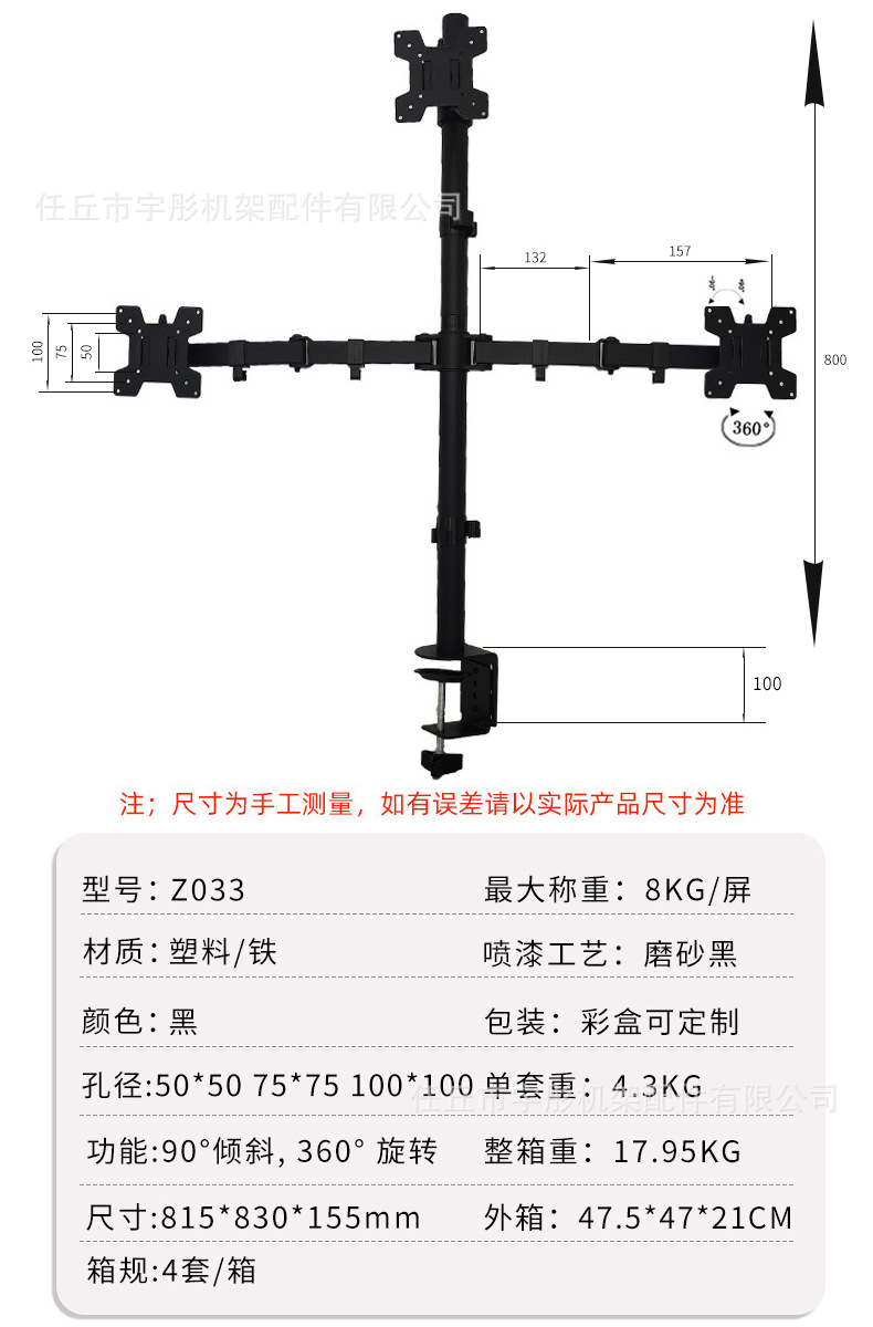 多屏显示器支架电脑显示器夹桌面台式底座屏幕横竖屏旋转增高支架