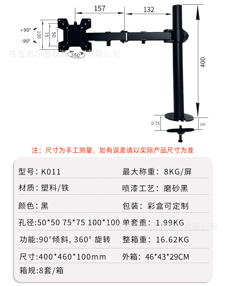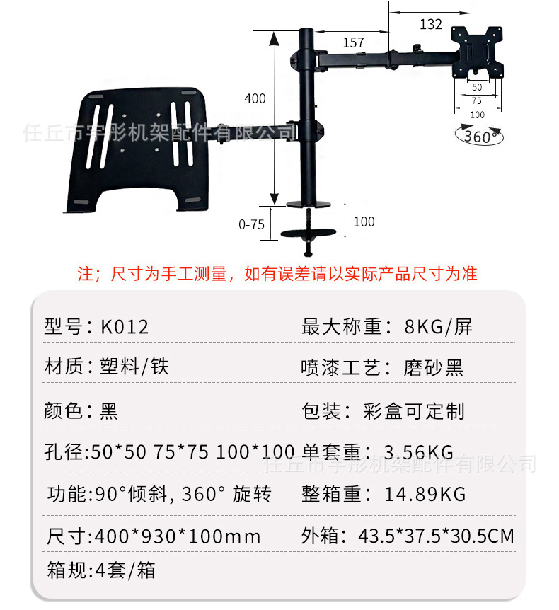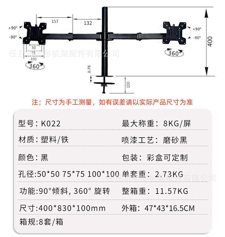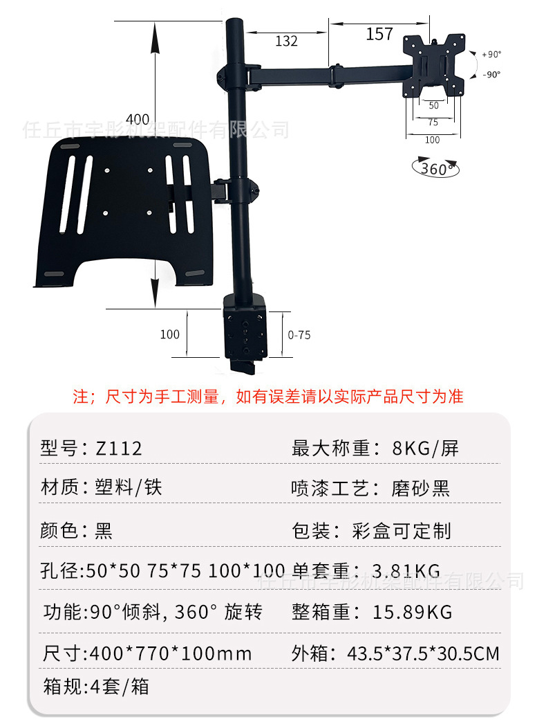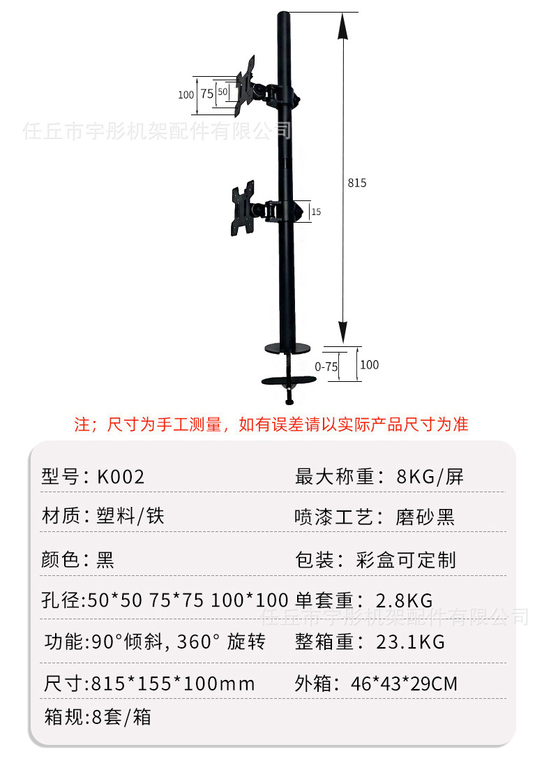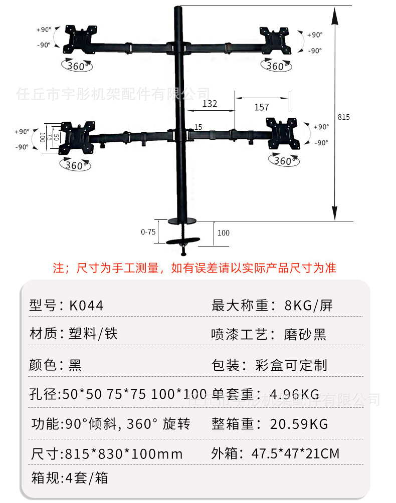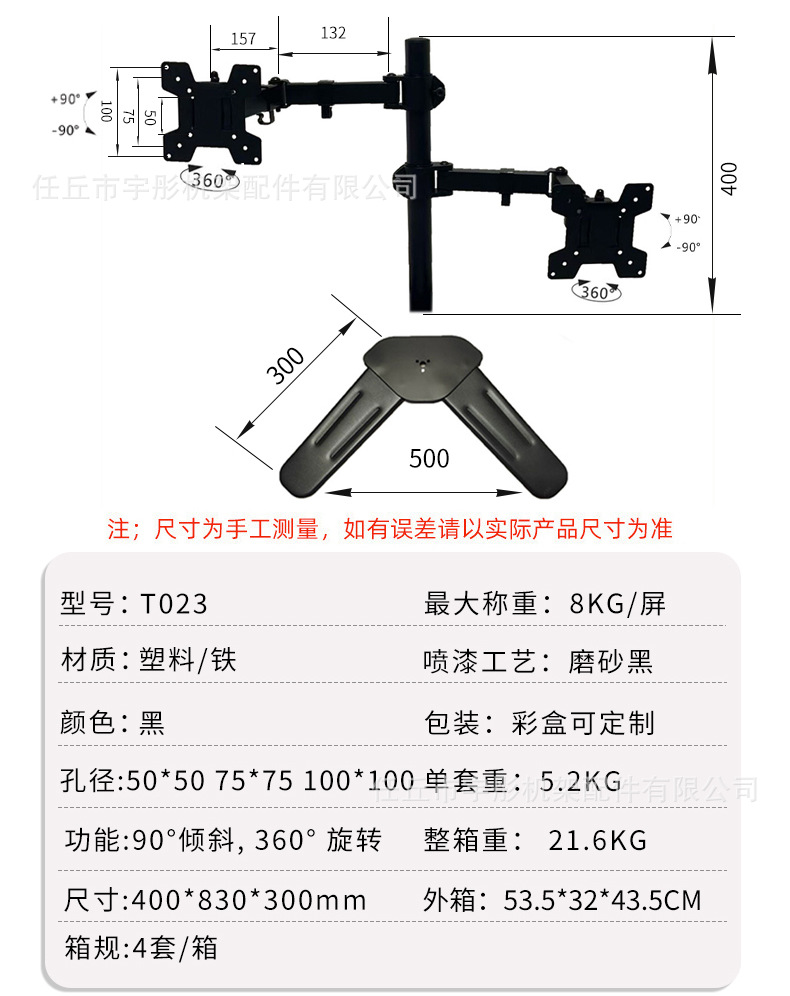 多屏显示器支架电脑显示器夹桌面台式底座屏幕横竖屏旋转增高支架