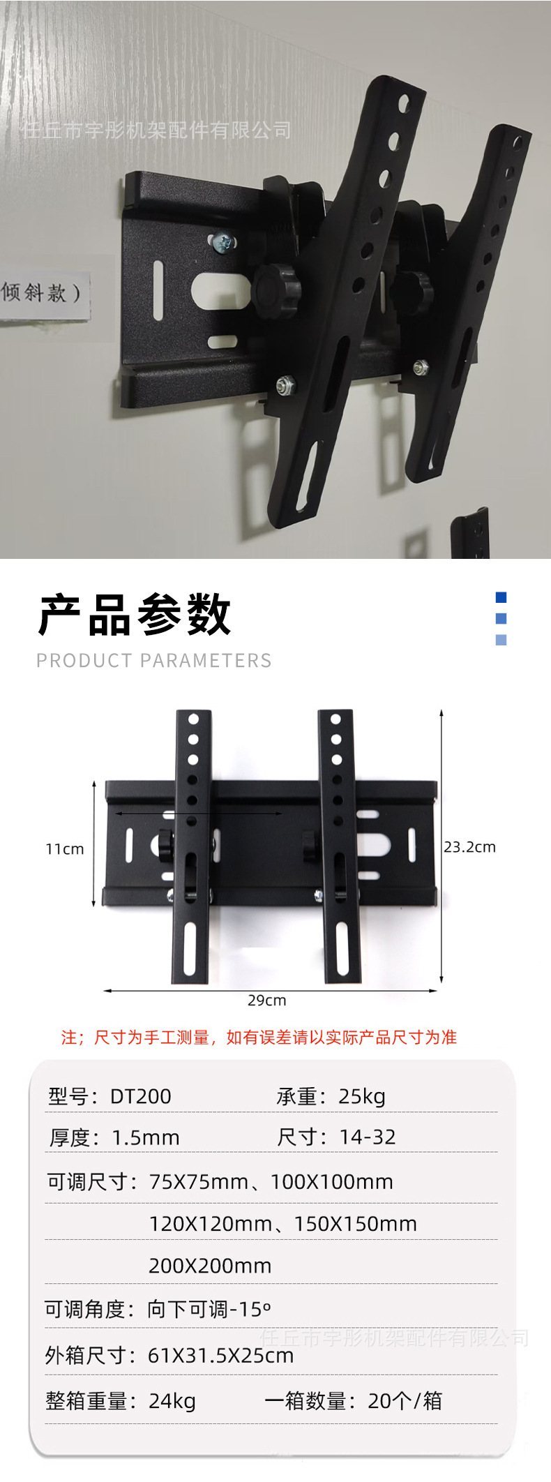 电视机挂架液晶屏通用挂架壁挂式可俯仰调节电视挂架显示器壁挂