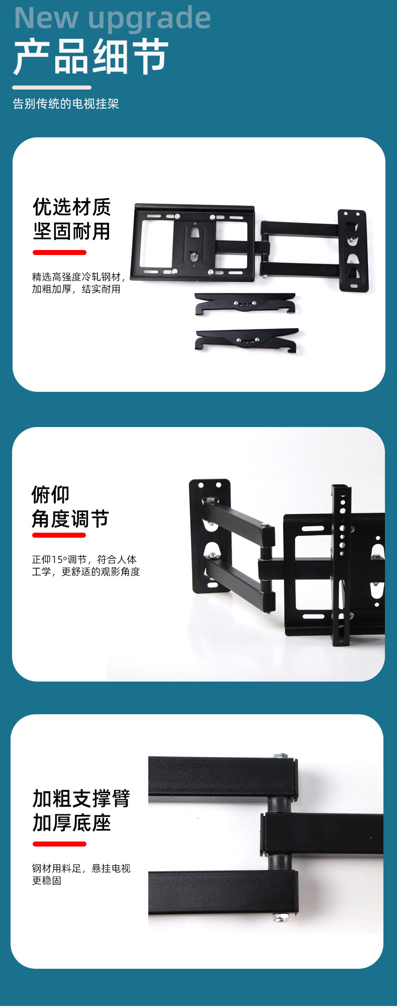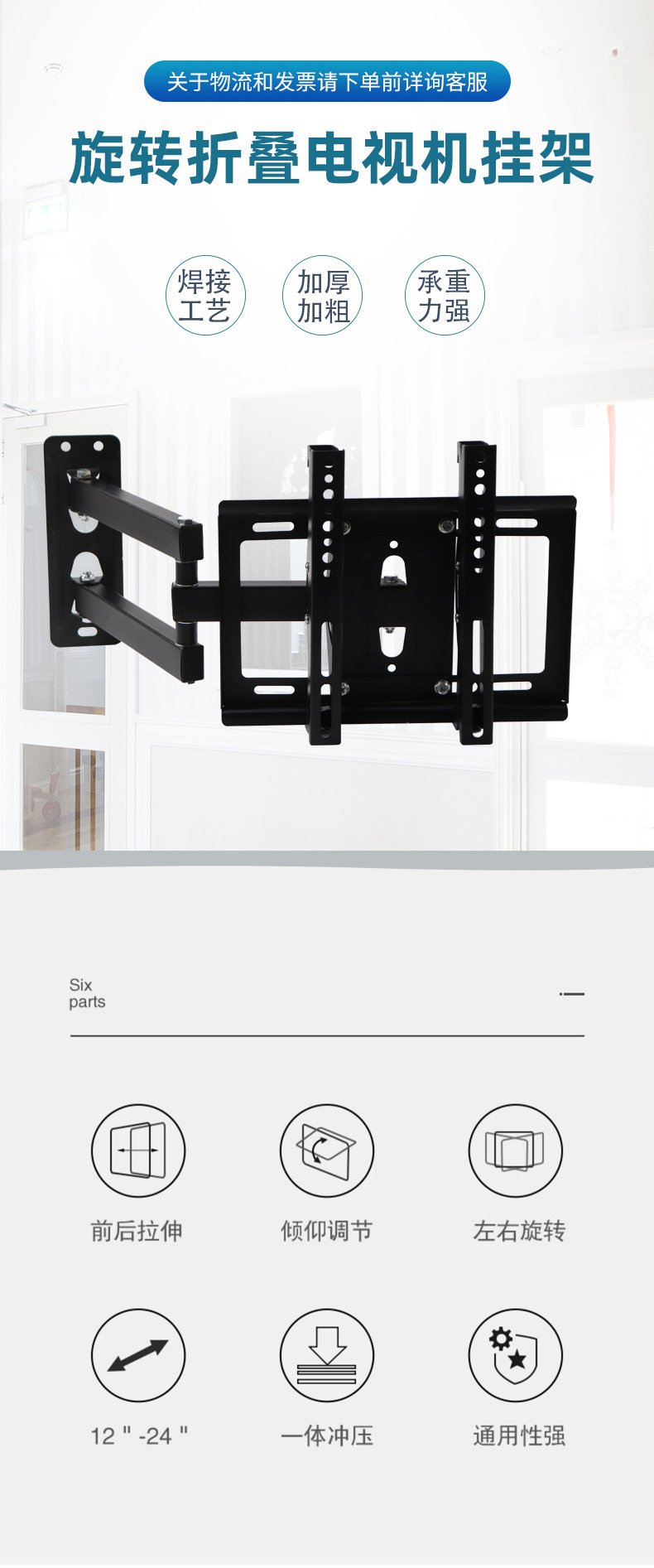 可伸缩电视挂架旋转式液晶显示器支架14-40寸挂架上下可调