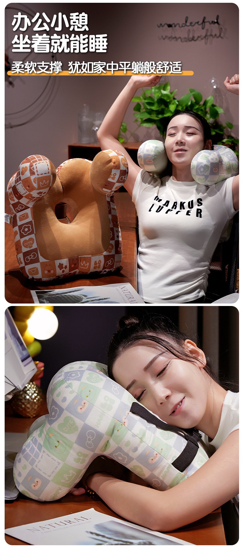 工位枕办公椅头枕靠垫办公室午休神器睡觉护颈枕靠背枕午睡