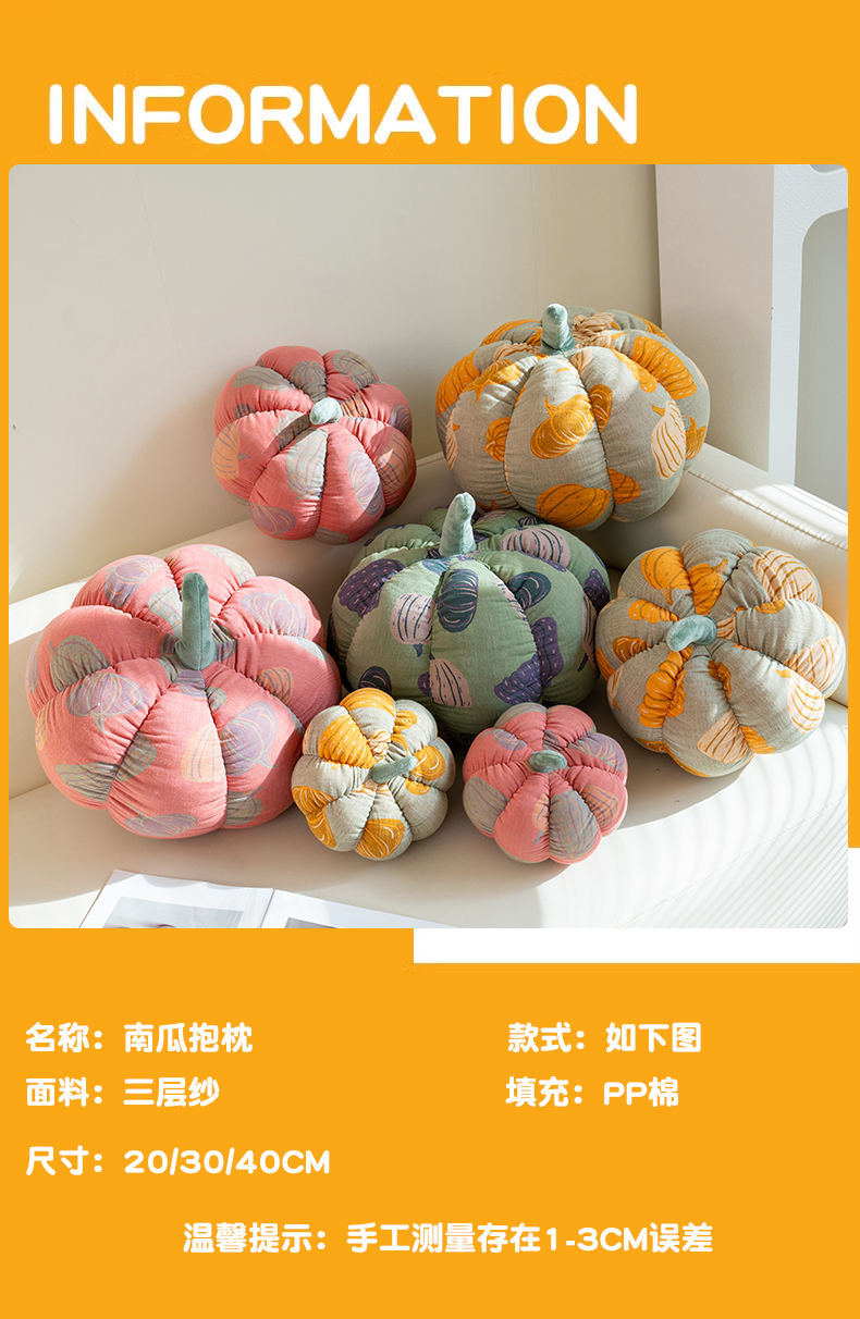 - 颜色:三层纱南瓜抱枕(黄)