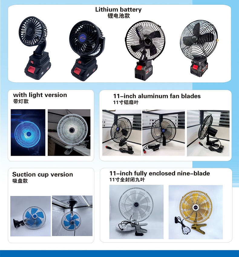 铁网罩铝扇叶风扇 车载电风扇户外家居办公室露营 超长续航电机
