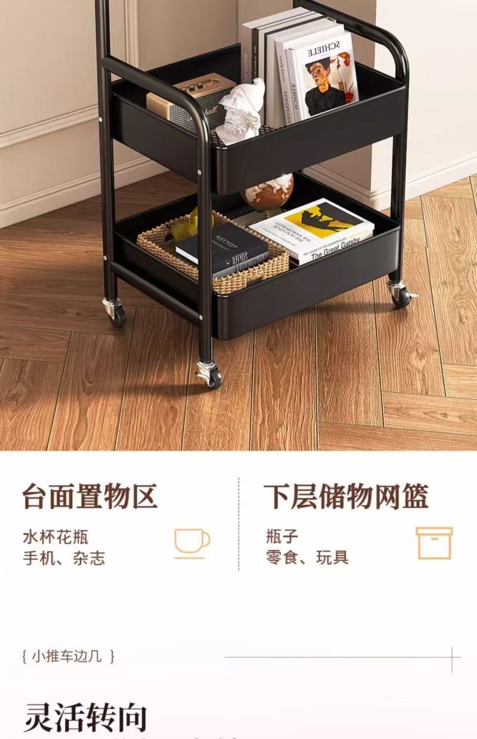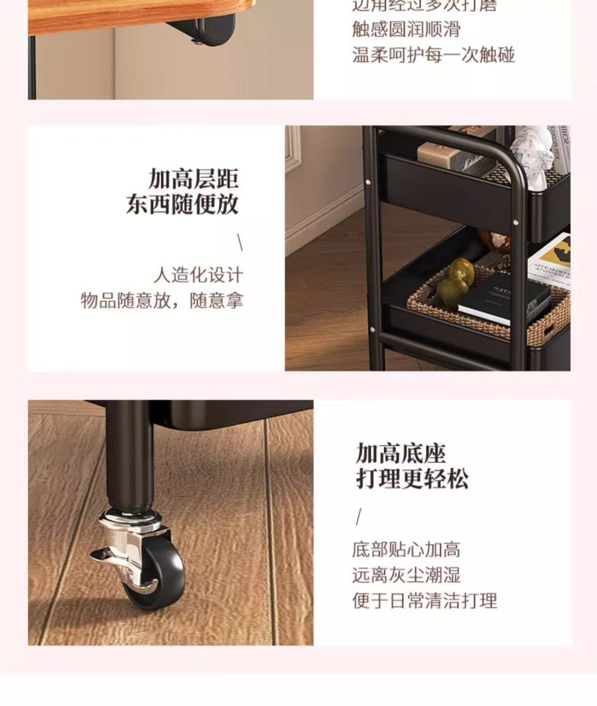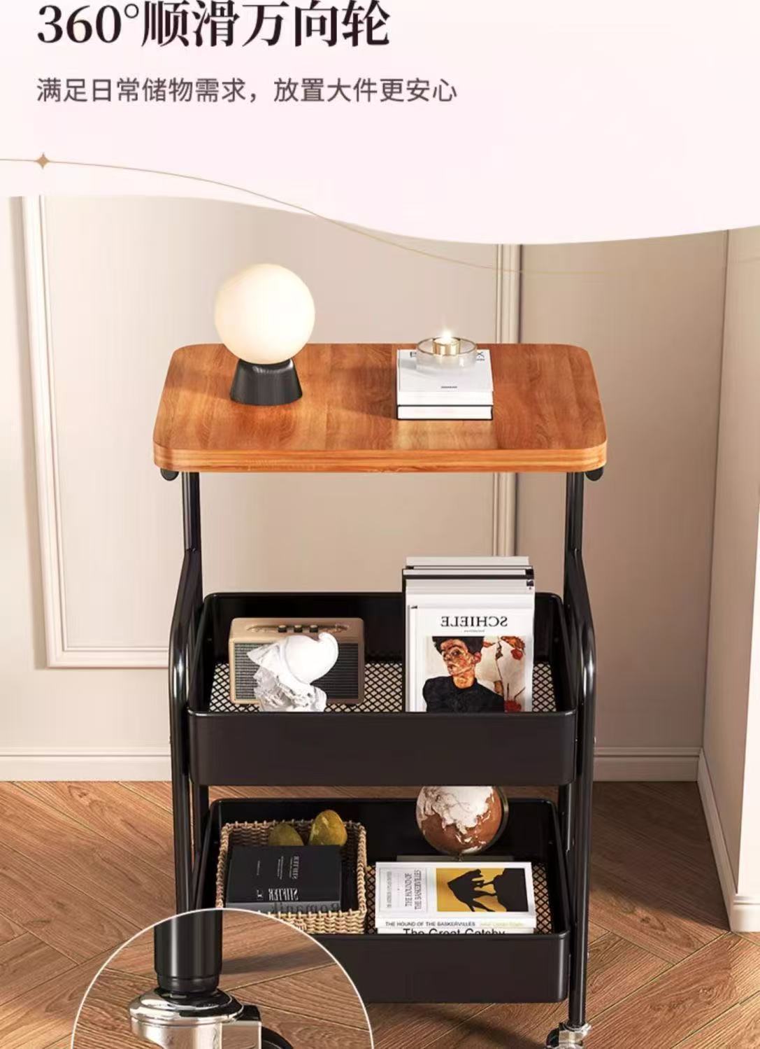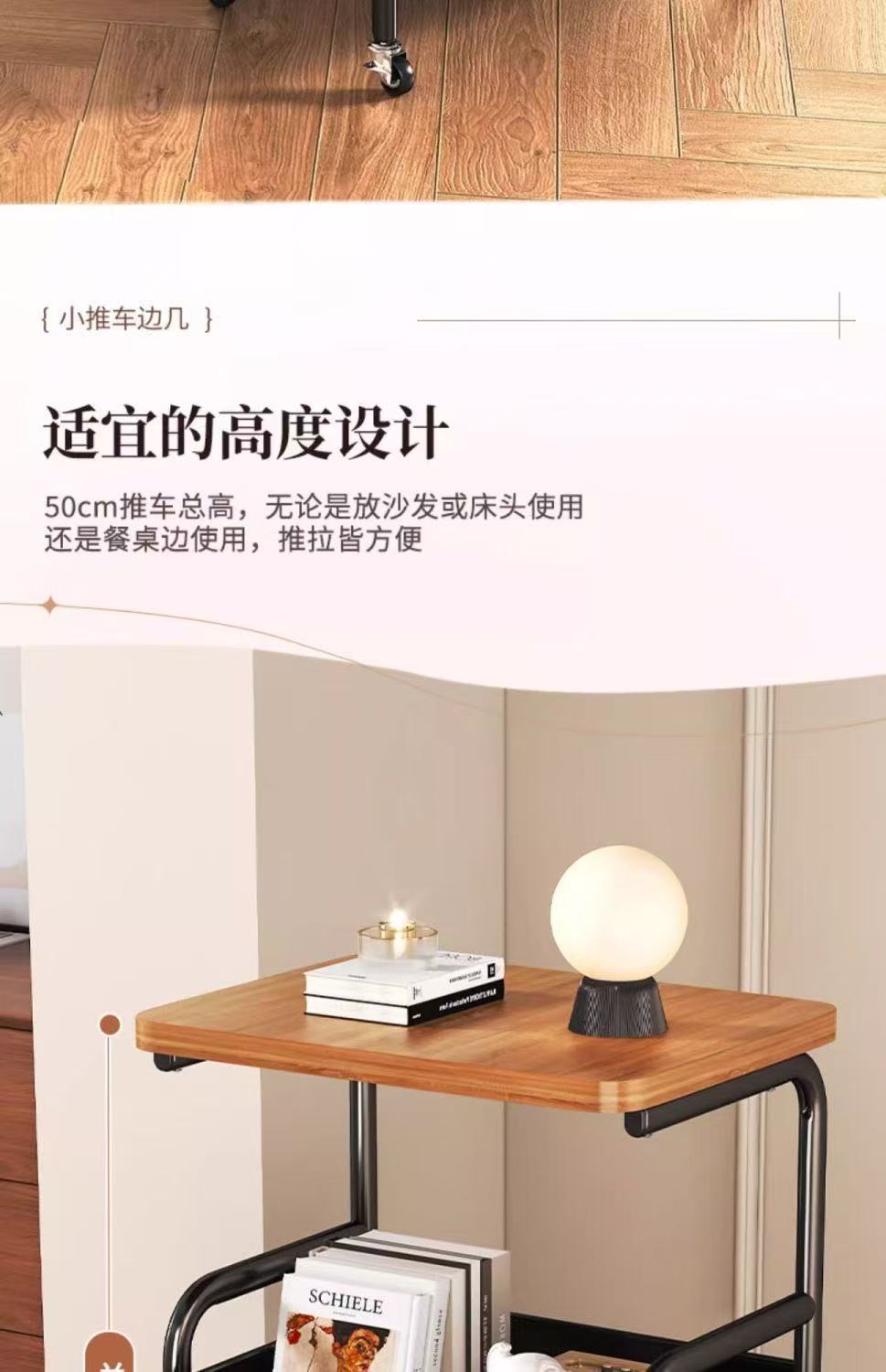 小推车置物架带桌板可移动零食收纳架中古风客厅沙发边几置物架