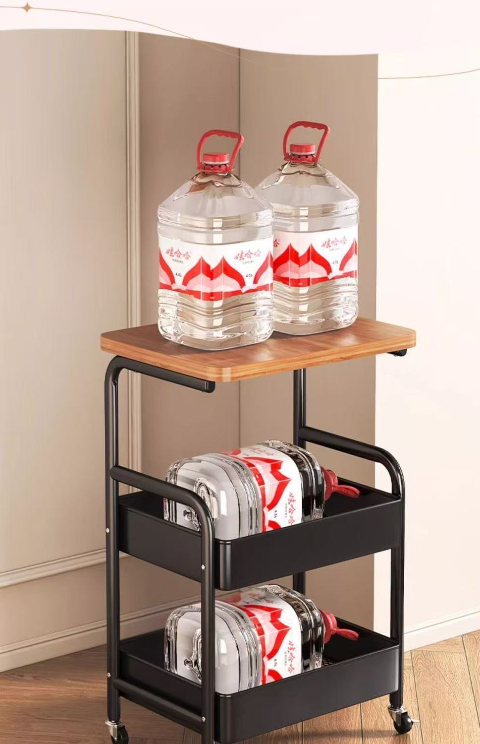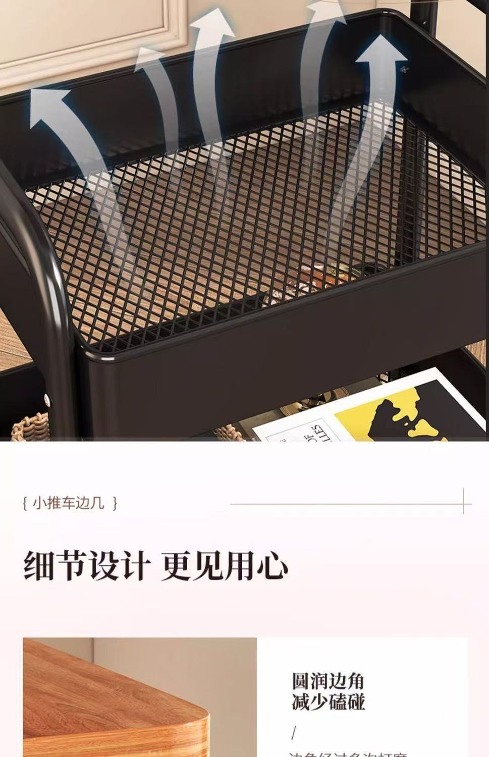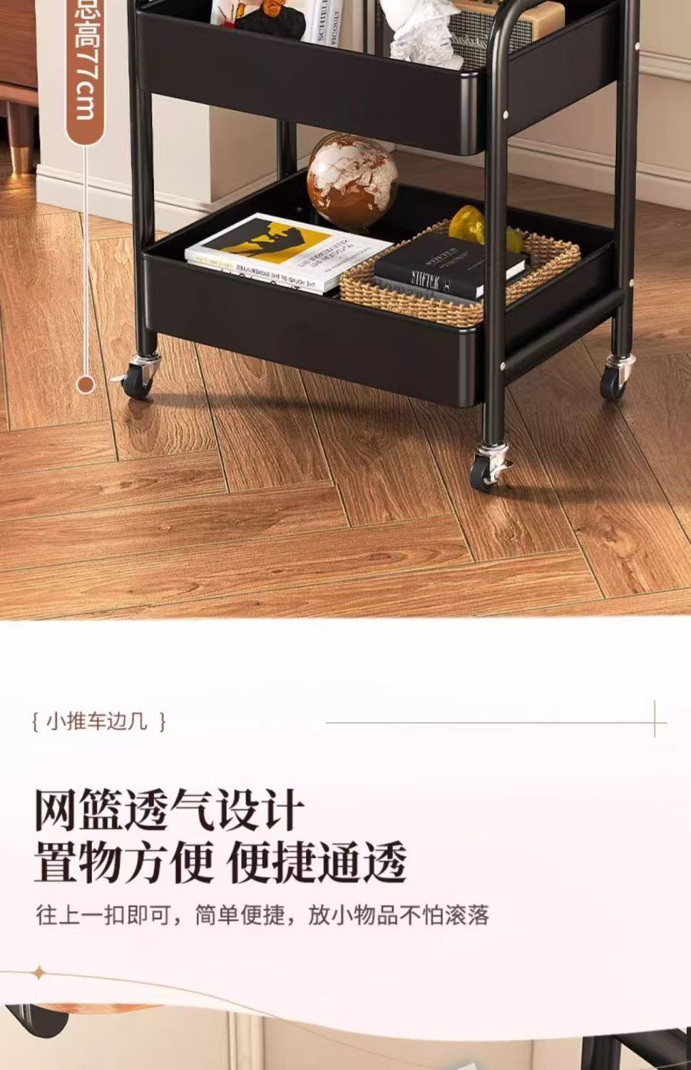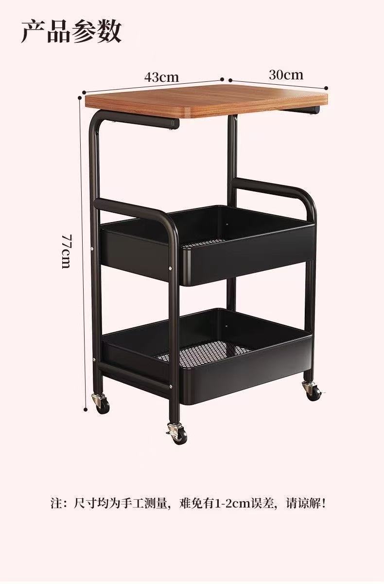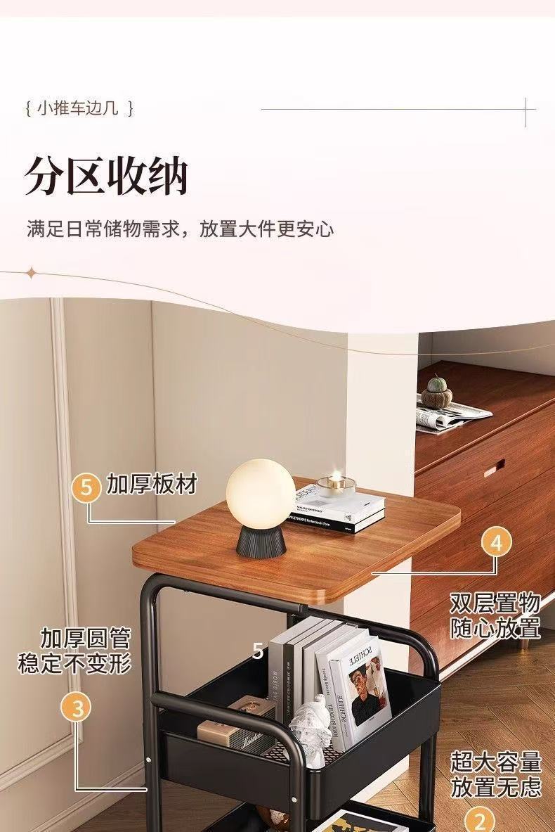 小推车置物架带桌板可移动零食收纳架中古风客厅沙发边几置物架