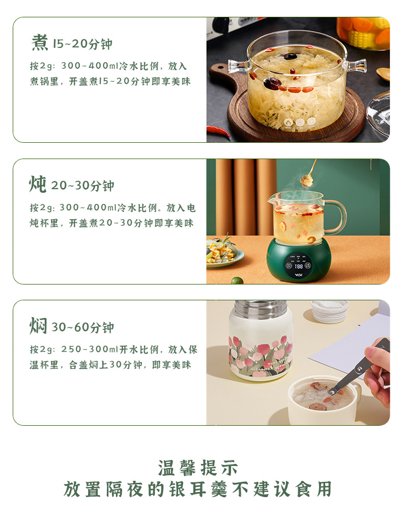 - 包装规格:80g*1(亚克力瓶)+焖烧杯+10包银耳伴侣+勺子